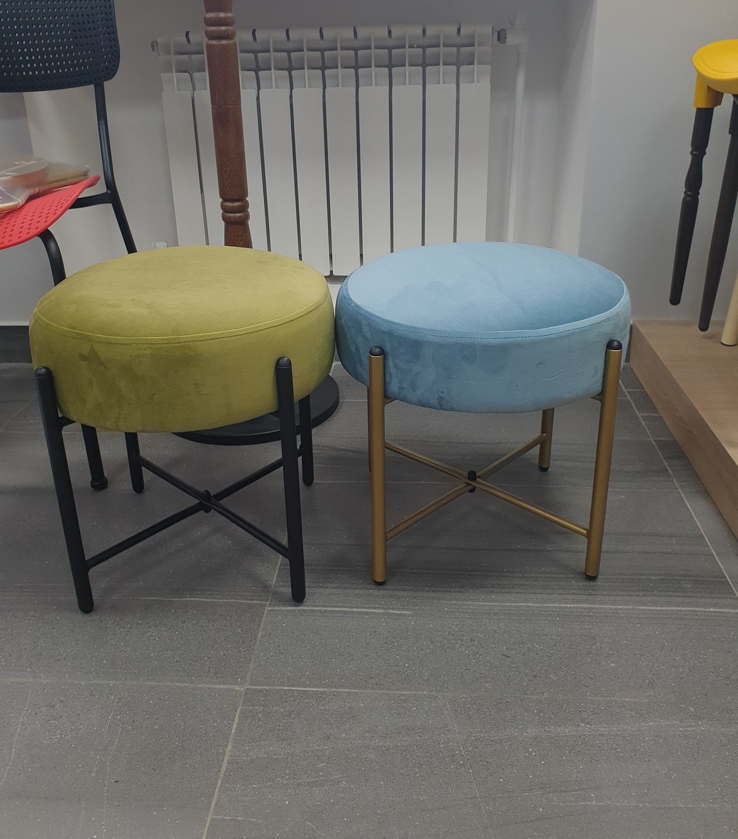 Надежный металлический каркас окрашен порошковой краской, устойчивой к механическому воздействию. Каркас выполнен из трубы. Сидение выполнено из микровелюра с мягким наполнителем.