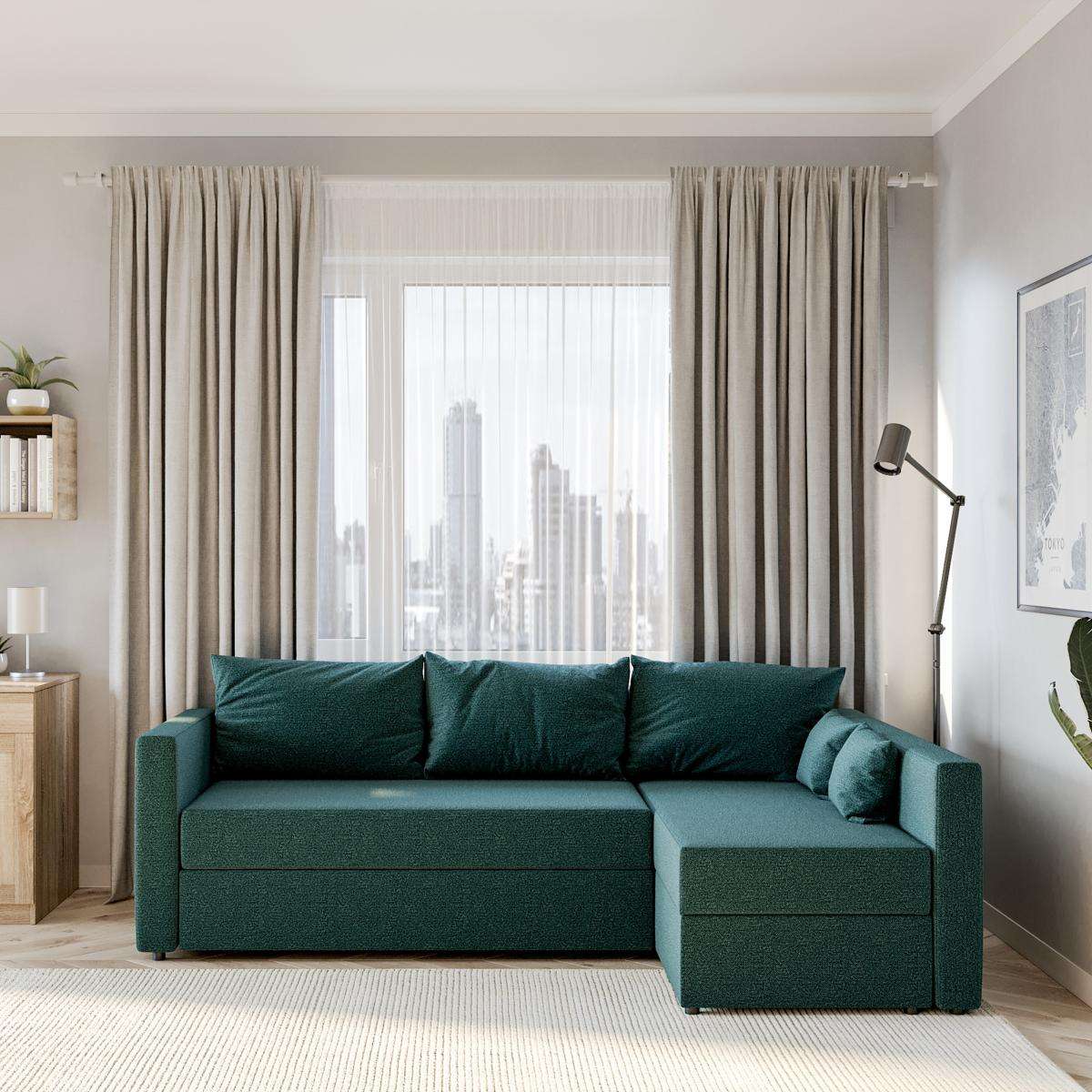 Диван трехместный с угловой секцией Вало с длинным подлокотником (ДП) Malmo 81 (turquoise) LA 2295х910х720, цвет Сине-зеленый.