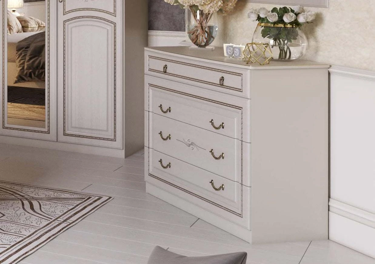 Комод “Николь” – это изысканный и стильный элемент мебели, выполненный в классическом стиле.