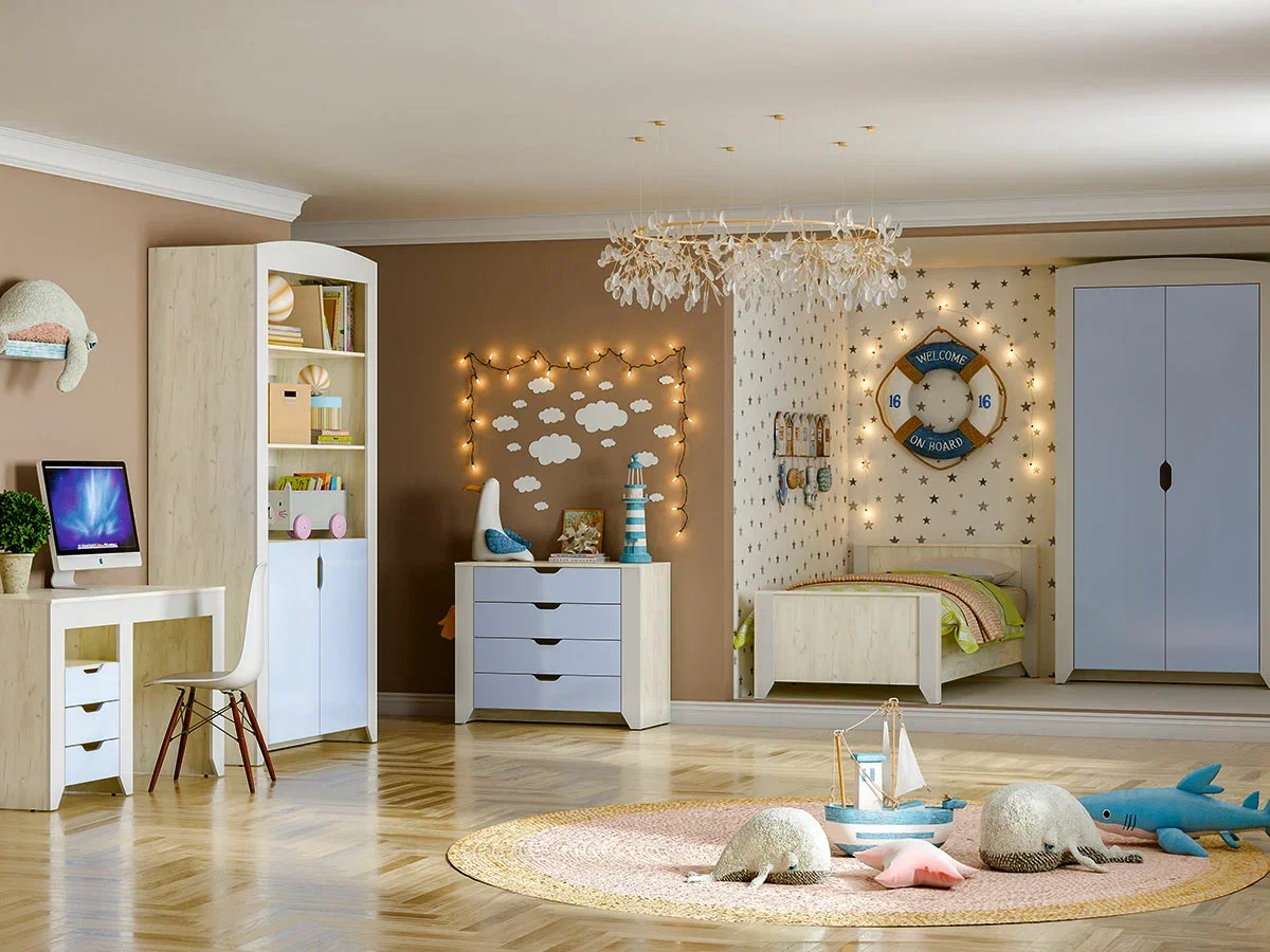В состав коллекции входят шкафчики, кровати, письменные столы и другие предметы обстановки.