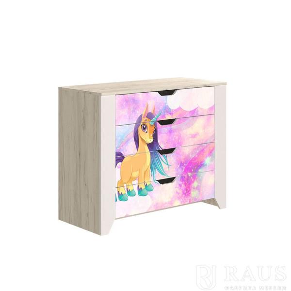 Цветные тематические вставки по фасаду скрадываются на фоне основного белого цвета, за счет чего мебель кажется воздушной и легкой. Невероятные приятные для глаза пастельные оттенки зеленого, голубого и розового способствуют расслаблению, не утомляют нежную психику ребенка.