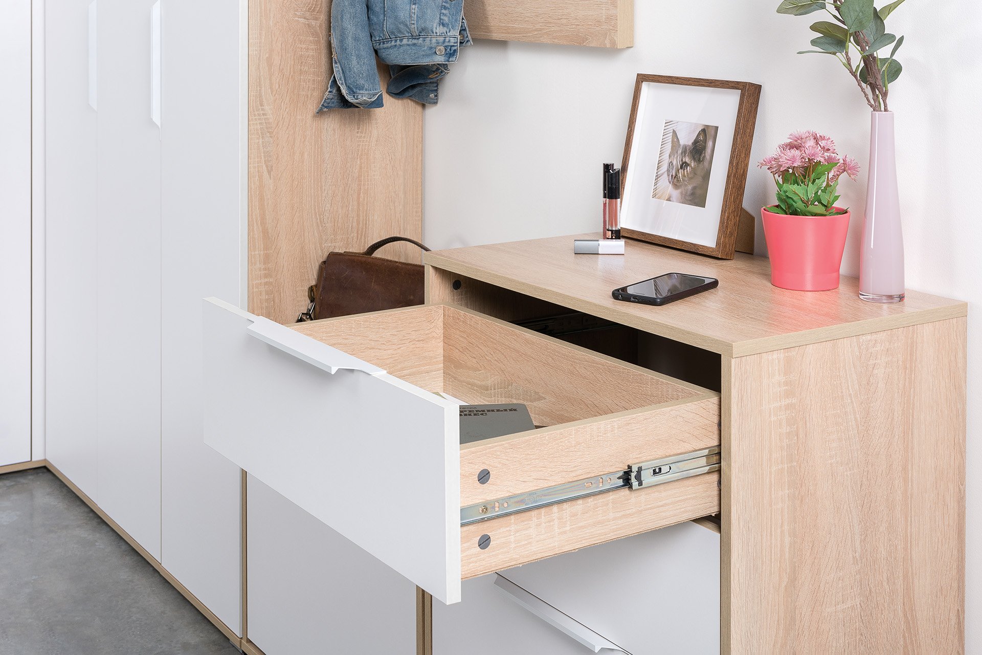 Выдвижные ящики на шариковых направляющих полного выдвижения;
