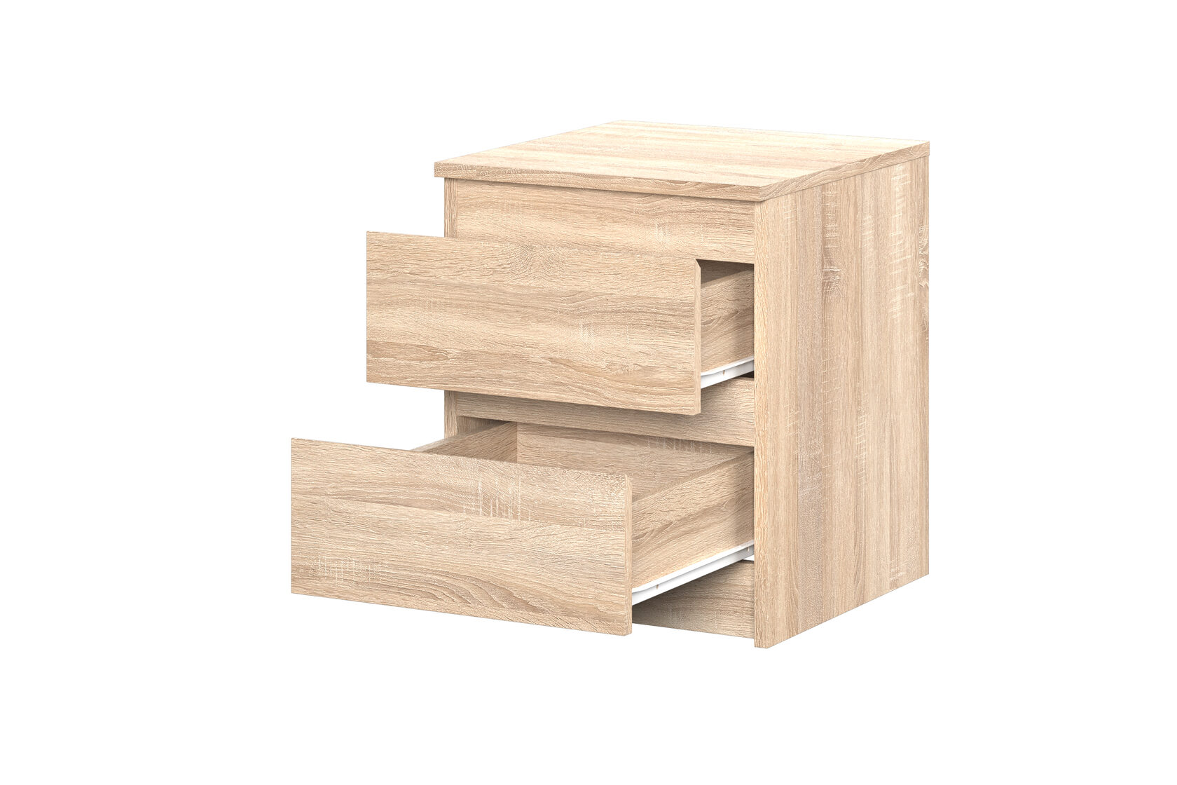 Комод имеет два вместительных ящика, что позволяет хранить различные предметы и аксессуары. Роликовые направляющие обеспечивают плавное и бесшумное открывание ящиков.