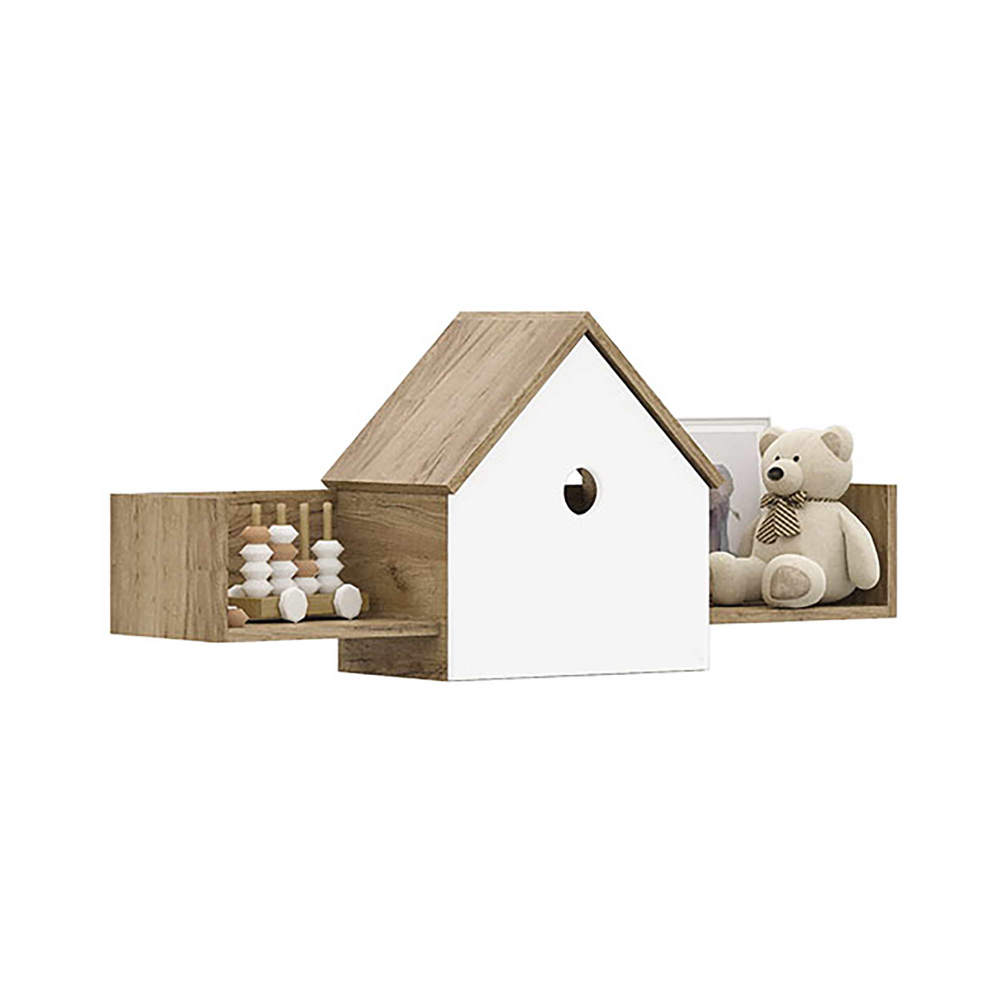 Отличительный элемент дизайна – настенные полки, стилизованные под скворечник, и округлые формы фасадов.