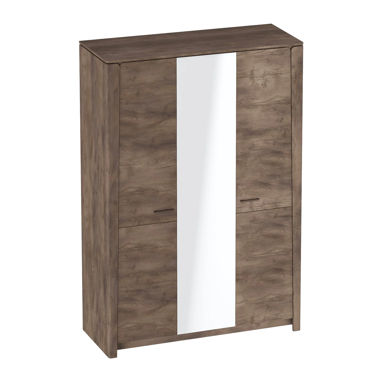 Зеркальные поверхности трёхдверного шкафа и надстройки туалетного столика помогут зрительно увеличить площадь помещения. Не нужно покупать отдельно зеркало – это удобно и экономично. Ручки-скобы гармонично дополняют внешний вид мебели, которые придают ей особый шарм и элегантность.