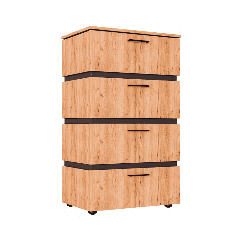 Комод с четырьмя ящиками обеспечивает достаточно пространства для хранения вещей, что делает его не только стильным, но и практичным элементом.