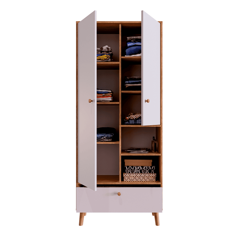 Оригинальный 2х дверный шкаф с открытой нишей: идеальный для демонстрации книг, растений или любимых предметов.