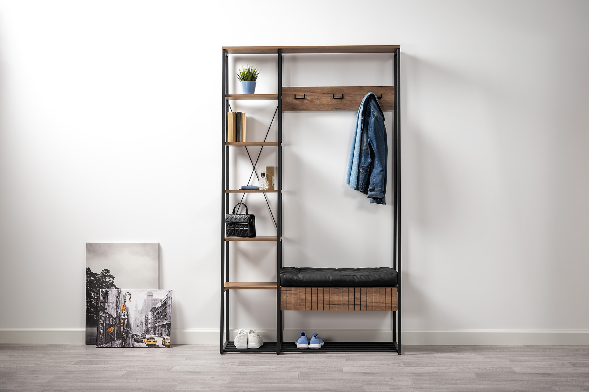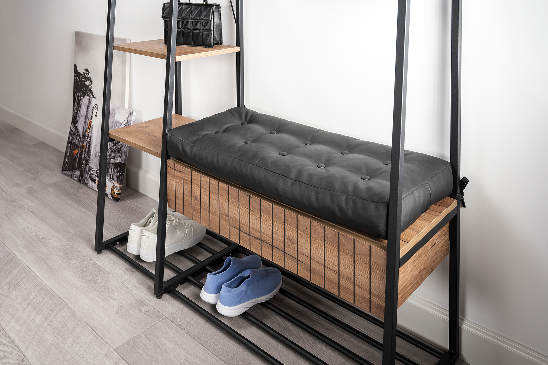 Сиденье с мягким элементом позволит комфортно переобуться, а съёмная металлическая полка для обуви значительно упрощает уборку.