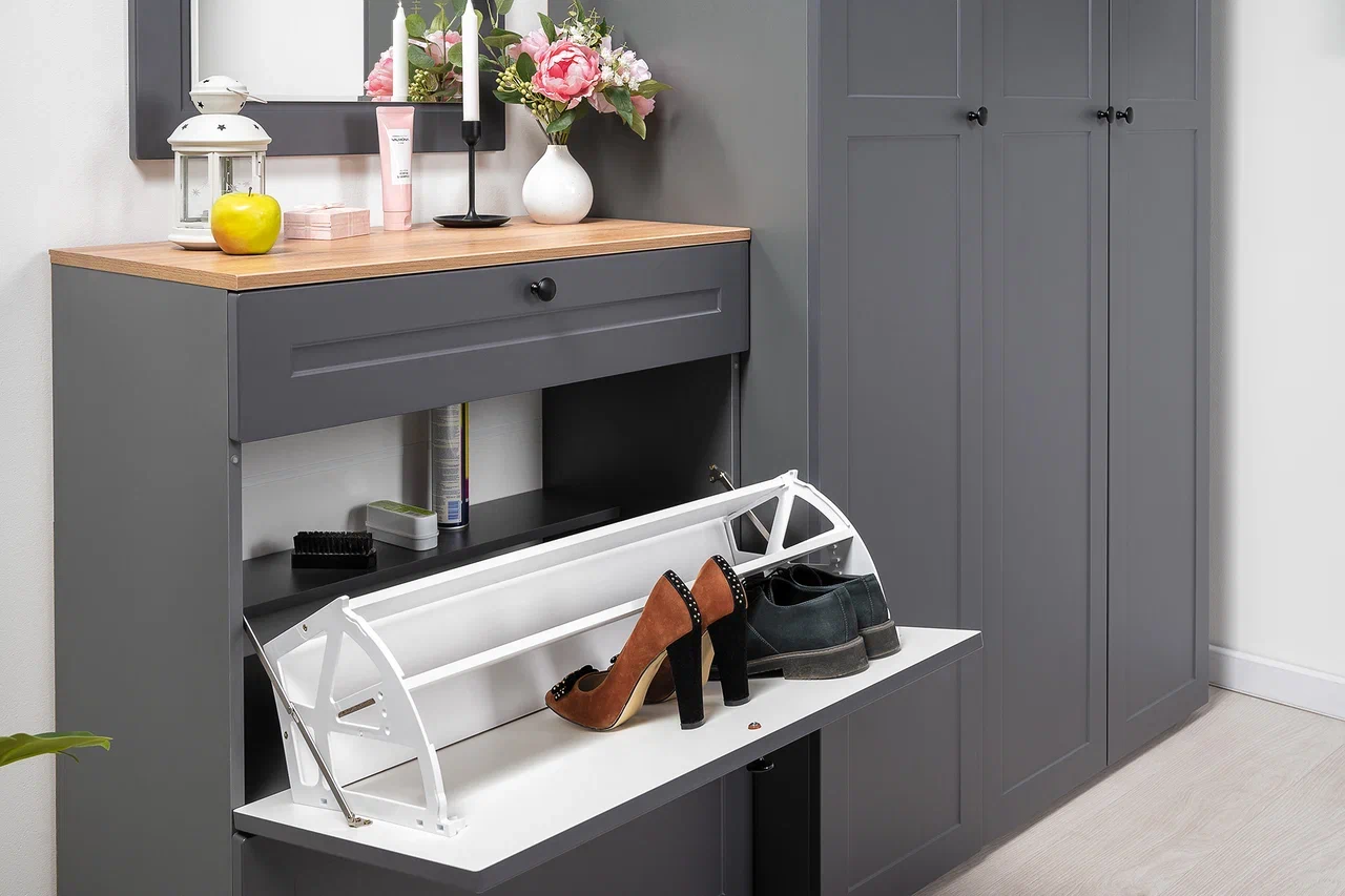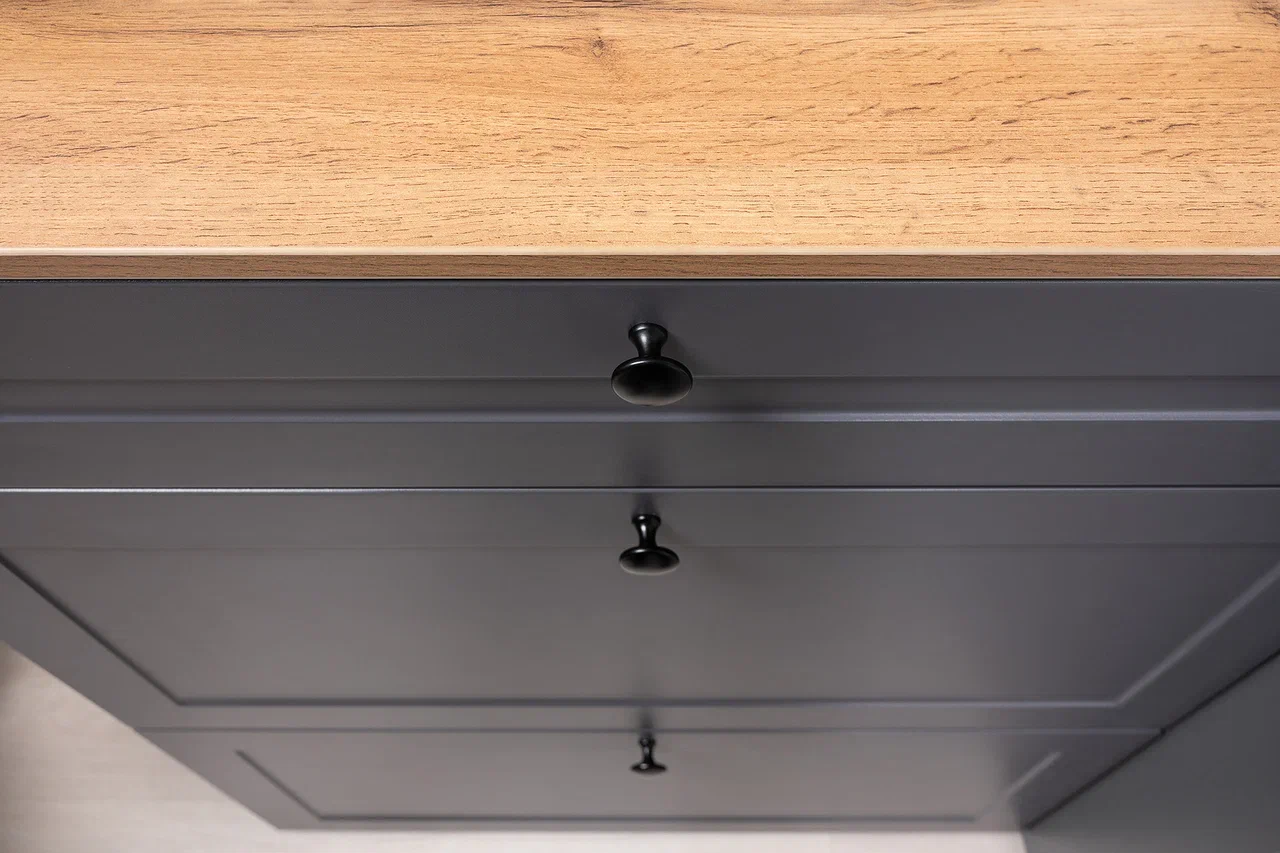 Продуманная система хранения с полками и ящиками обеспечивает практичность и удобство.