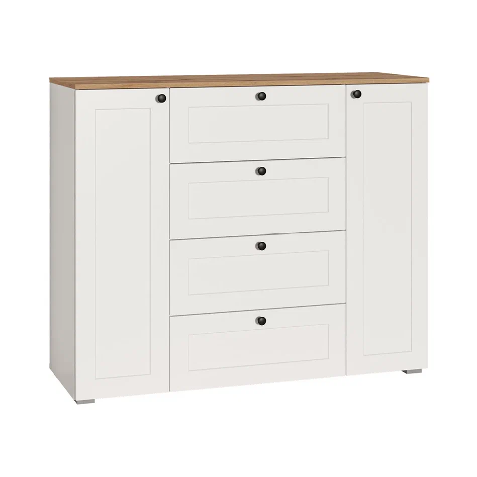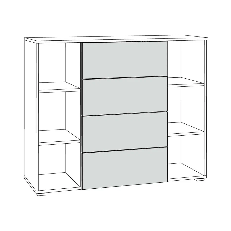 четыре вместительные ящики на механизмах полного выдвижения и двумя отделениями с распашными дверями; за каждой дверью имеются по две полки.