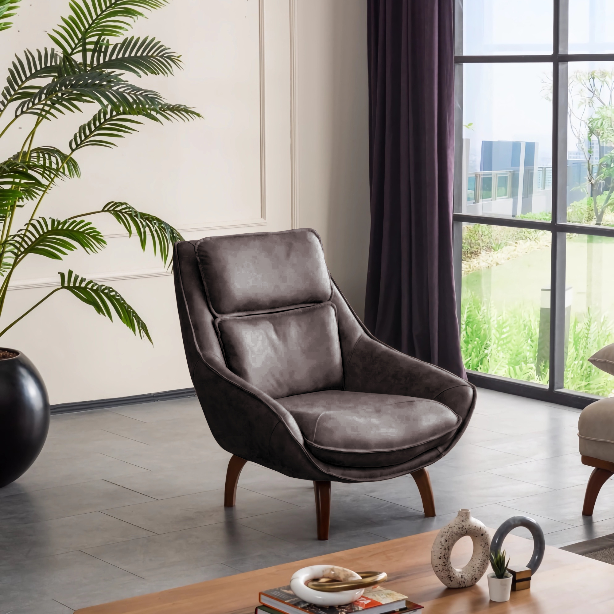 Минималистичный дизайн: Кресло изготовлено из ЭКО-материалов. Ткань премиум анти-вандальная эко замша. Легко чистится. Высота -95 см.