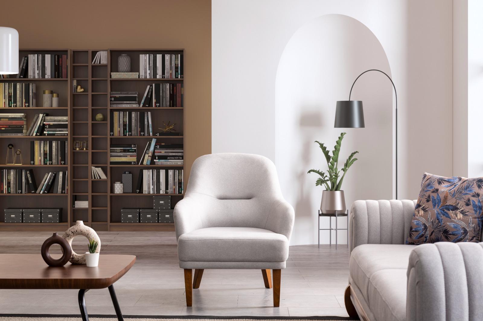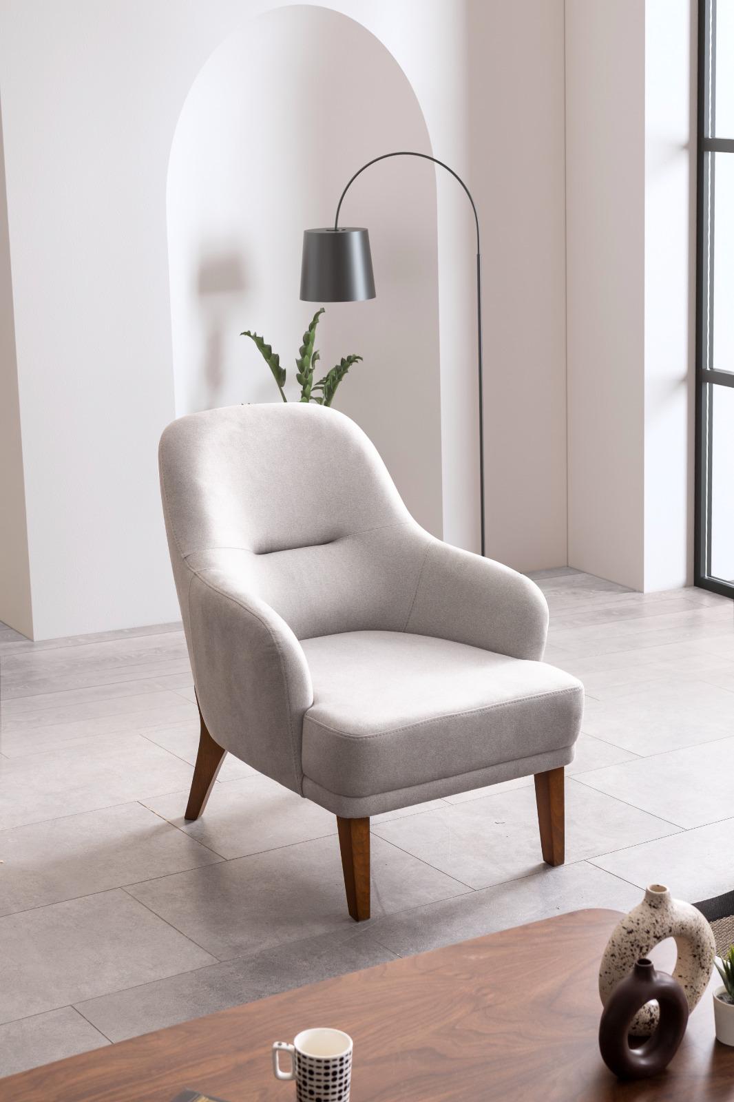 Нейтральный цвет обивки позволяет креслу легко сочетаться с любым декором.