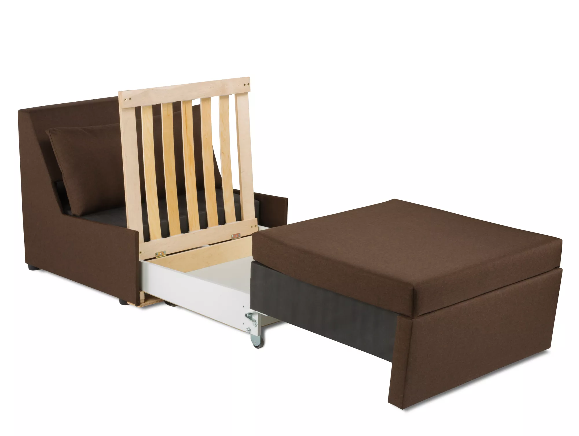 Компактное и функциональное кресло не сложными движениями трансформируется в удобное спальное место для одной персоны. Гарантийный срок для жилых и общественных помещений 18 месяцев.
