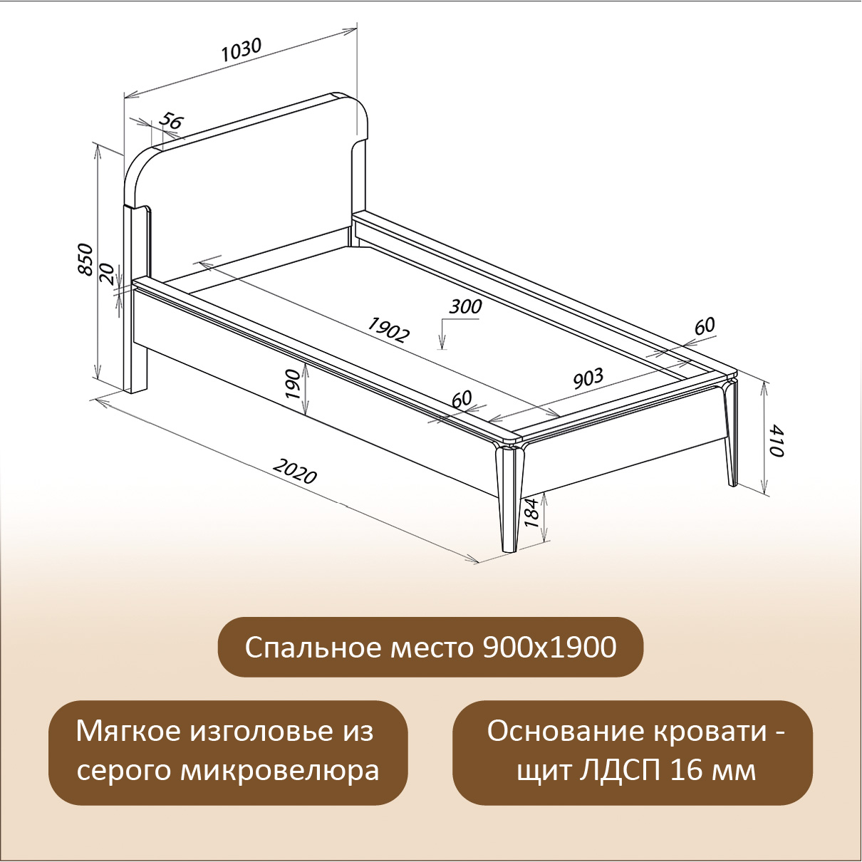 Спальное место: 1900*900 мм.