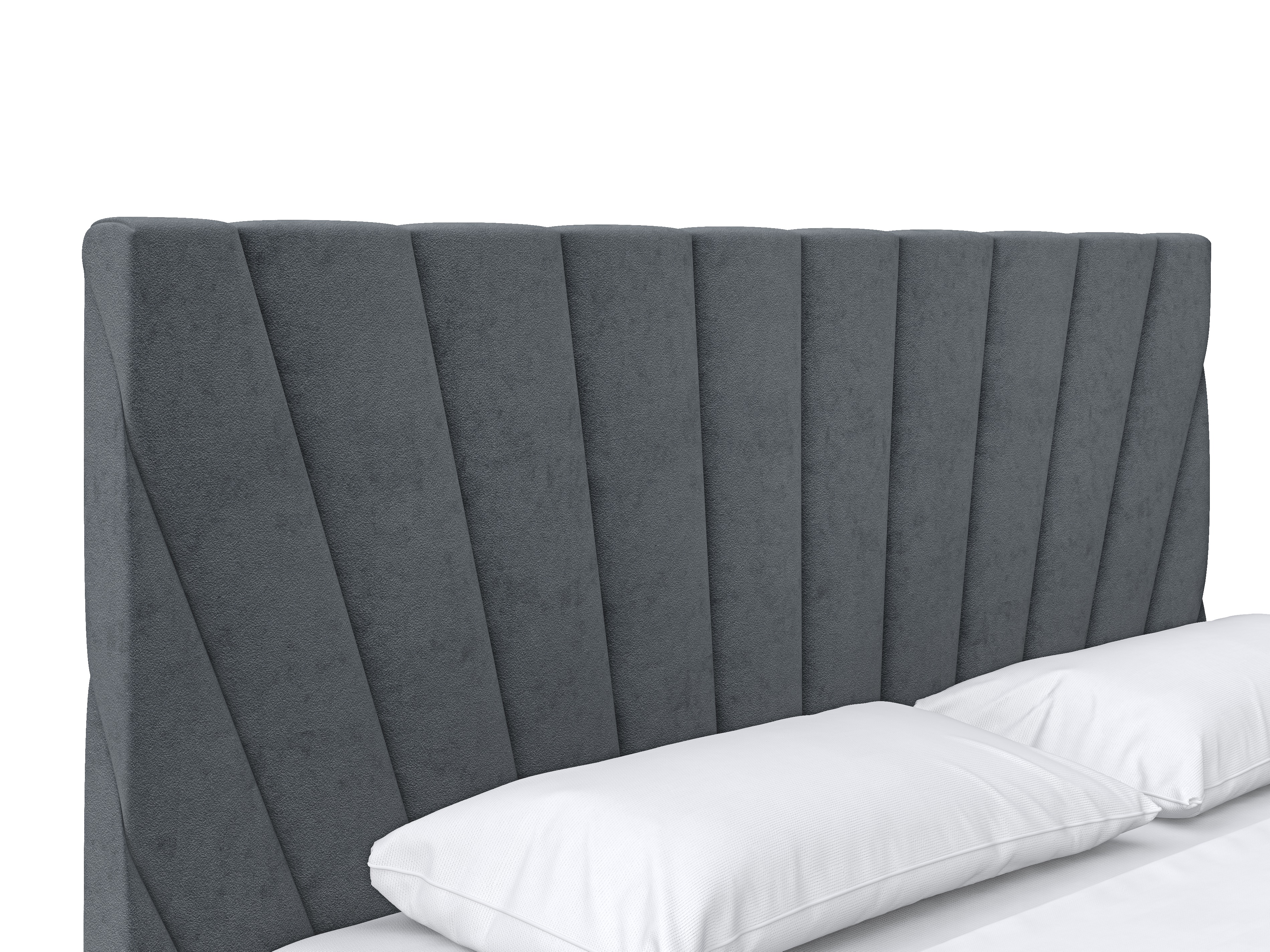 Эта кровать, выполненная из роскошного велюра с элегантной декоративной строчкой, выступающей лаконичным акцентом изголовья, представлена в трех изысканных цветах: