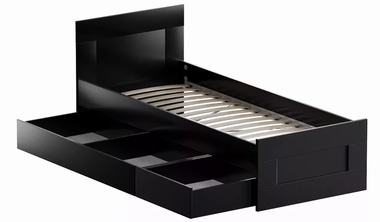 Кровать одноместная с ортопедическим основанием 90х200. Выкатные ящики для хранения 60х60 и 140х60 приобретаются отдельно