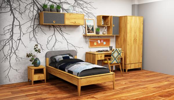 Шкаф 2хдверный, стол письменный с ящиками, полка закрытая вертикальная, полка простая, полка куб, стул, органайзер, полка закрытая-2 шт, кровать, тумба прикроватная.
