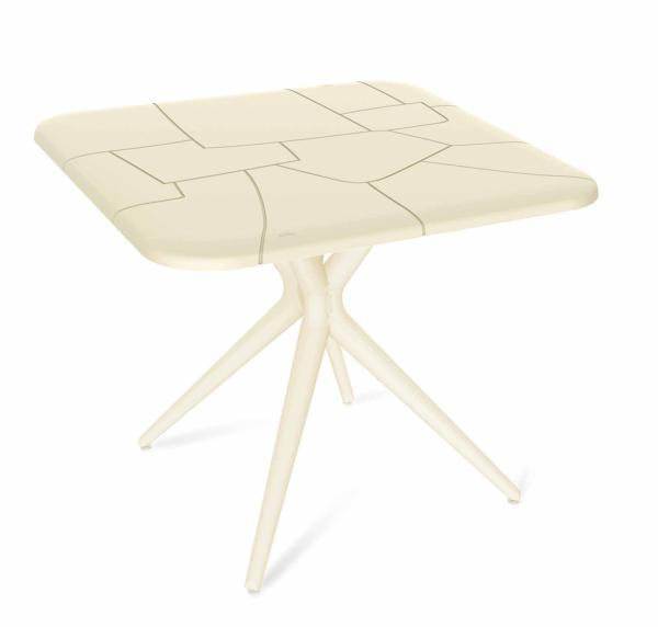 Графика и геометрия рисунка столешницы вдохновлена легендарной каменной кладкой из Перу. Они придают изделию эксклюзивный вид. Столешница имеет безопасный плавный закругленный переход от лицевой поверхности к боковым кромкам. Изящные перекрещивающиеся ножки повторяют натуральные изгибы деревьев.