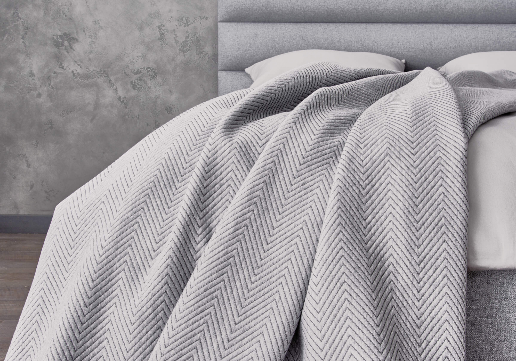 Трикотажные пледы Porto с классическим узором в виде крупного зигзага добавят уюта гостиной или спальне. Современная экологичная ткань на основе хлопка и переработанного полиэфирного волокна мягкая, долговечная и простая в уходе. Пледы единого размера подойдут для двуспальных кроватей.