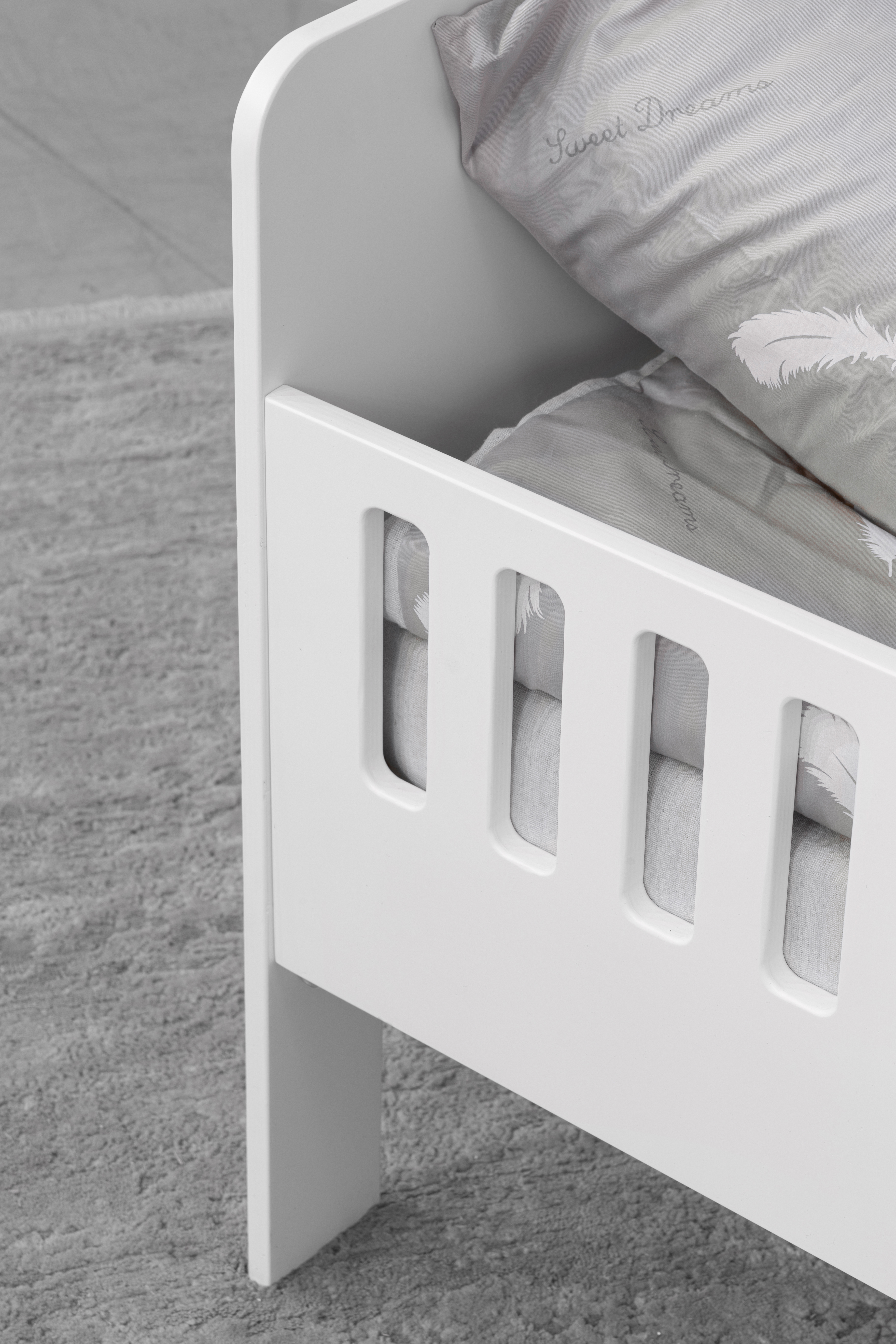 Fiora - это односпальная кровать, идеально подходящая для подросших малышей, имеет защитные бортики, чтобы предотвратить падение. Кровать изготовлена из экологически чистых материалов и краски, которые отвечают требованиям прочности, надежности и безопасности ребенка. Выполнена в современном стиле, обеспечивая внешнюю привлекательность и удобство использования.