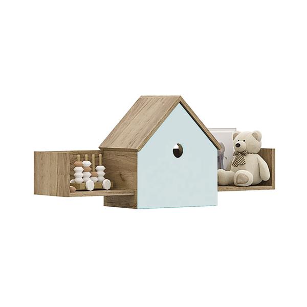 - Отличительный элемент дизайна – настенные полки, стилизованные под скворечник, и округлые формы фасадов.