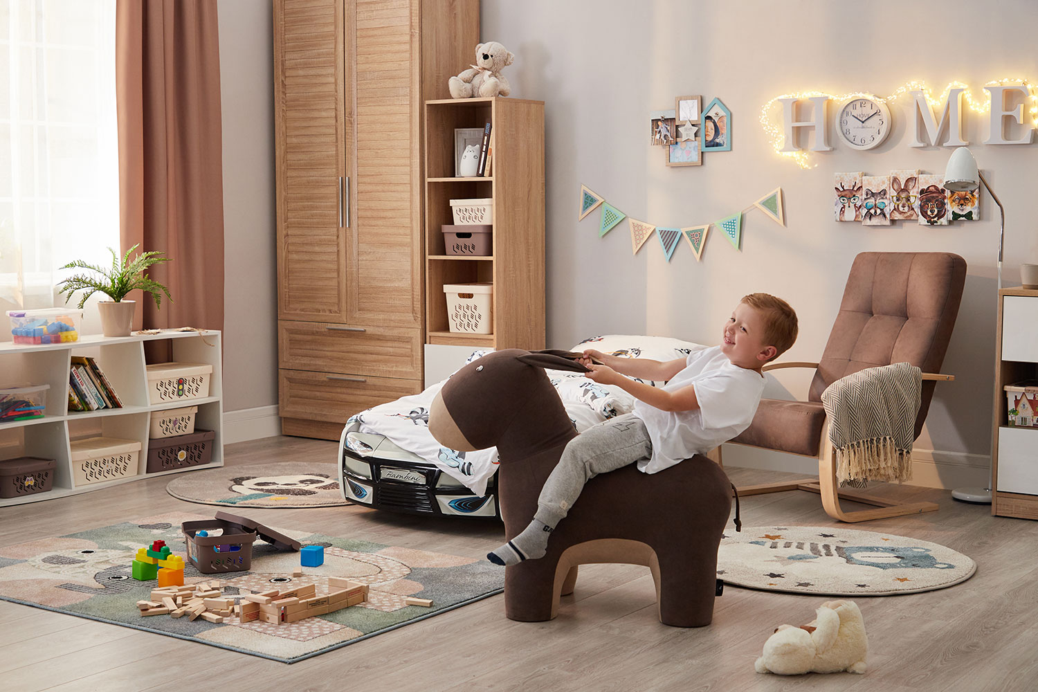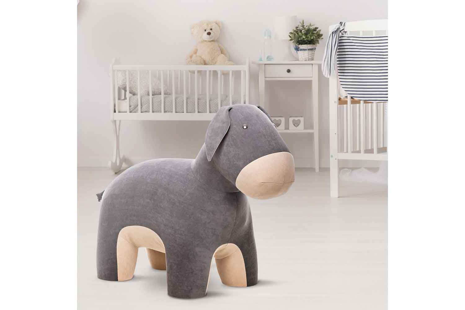 Наш ослик в отличии от его больших собратьев совсем не упрямый. Маленькое, мягкое животное с радостью станет другом вашего ребёнка или пуфом для ног во время просмотра любимого фильма.
