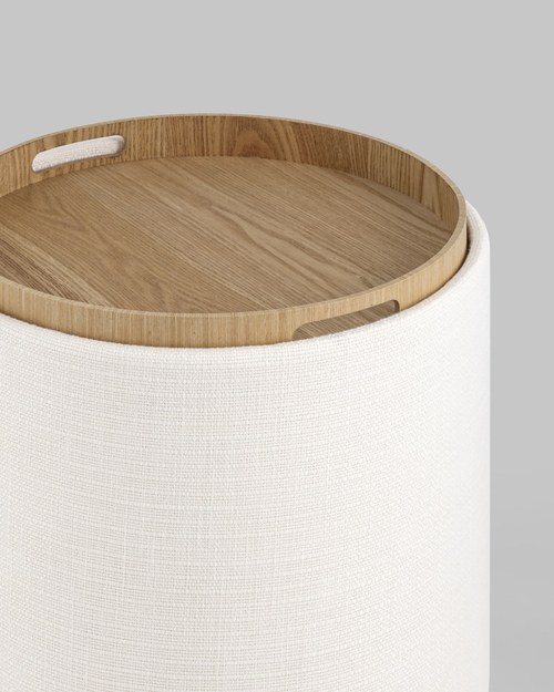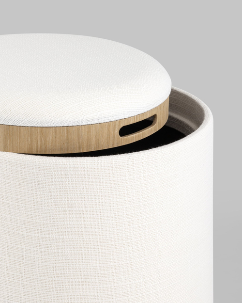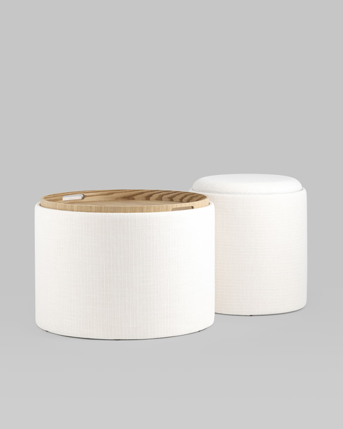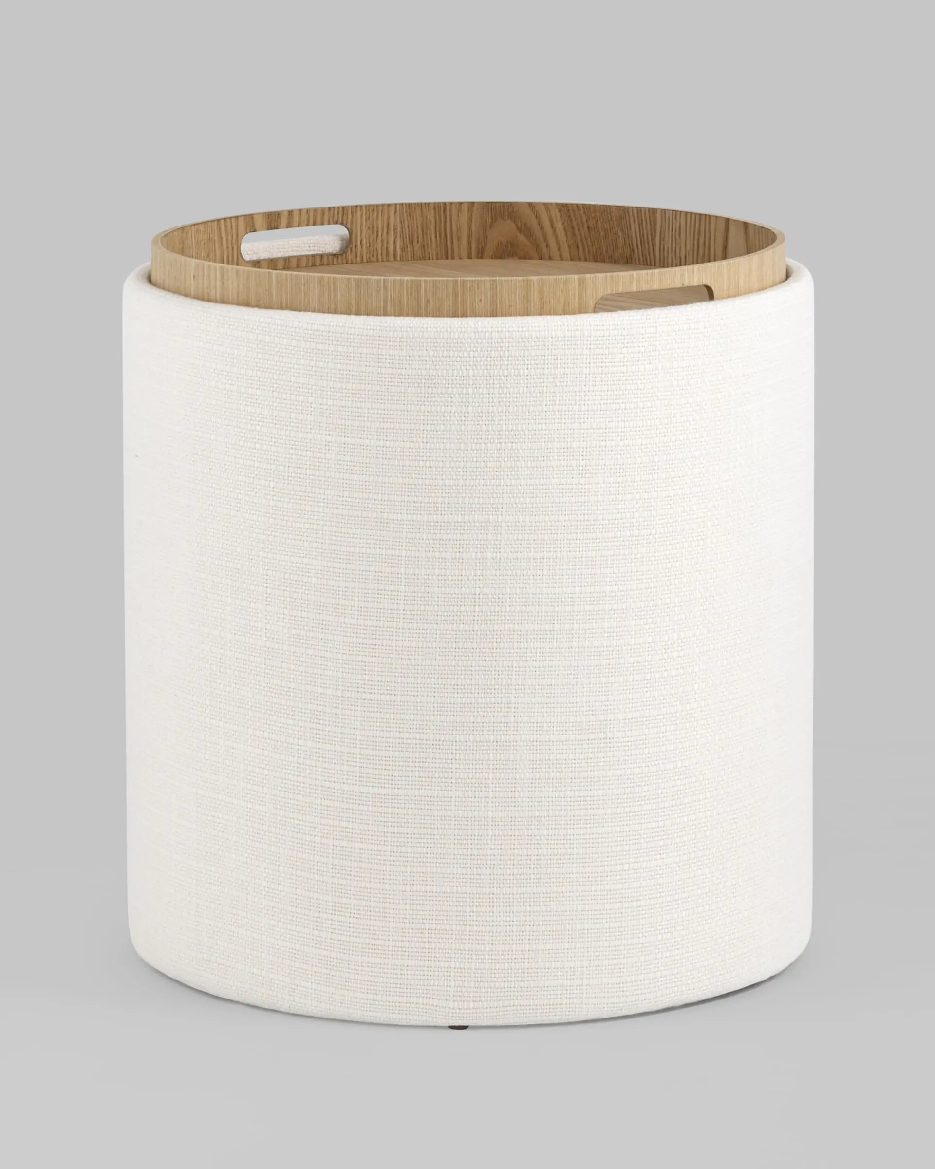 Мягкий пуф с ящиком станет незаменимым украшением интерьера. Он не только удобный, но и функциональный. Благодаря двухсторонней крышке, пуф можно трансформировать в журнальный столик. Столешница выполнена из светлого дерева с бортиками по краям и вырезными ручками для удобства, и безопасности при использовании. Крышка пуфика полностью съемная и при необходимости её можно использовать как поднос. Полезное дополнение - ящик для хранения различных мелочей, внутри обит тканью. Компактный и вместительный, такой пуфик наполнит пространство особым уютом и теплом. Подойдет для любого интерьера - как в классическом стиле, так и в современном.