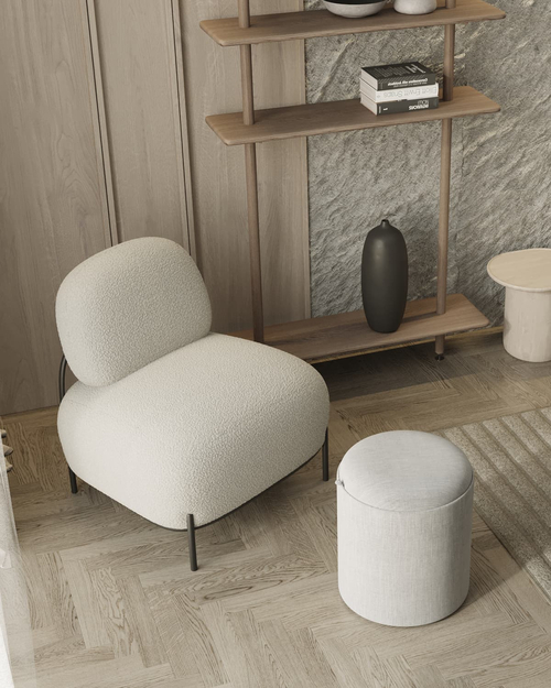 Мягкая обивка выполнена из рогожки - высокопрочный, устойчивый к истиранию и простой в уходе материал, отлично сочетается со вставками из дерева. Прочный каркас из фанеры не утяжеляет изделие и выдерживает нагрузку до 150 кг. Небольшие подпятники в основании пуфа защищают напольные покрытия от царапин и предотвращают скольжение.