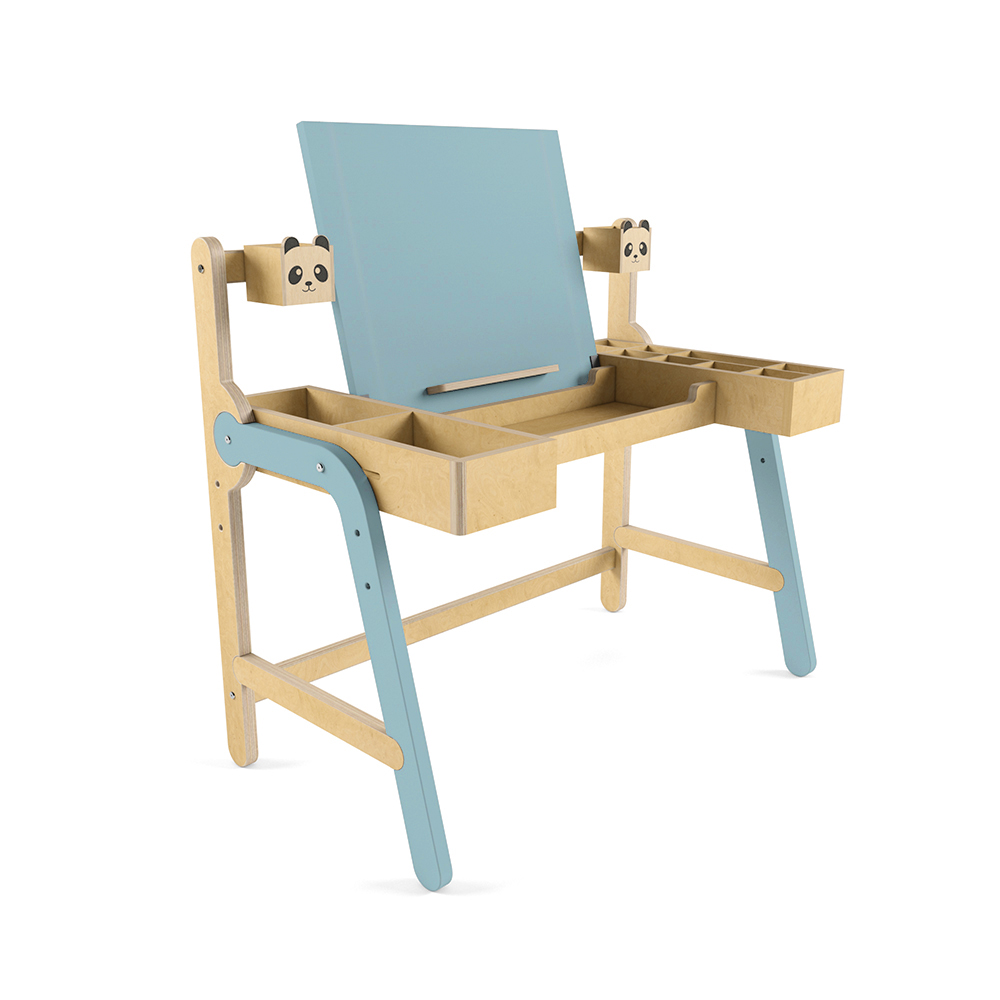 Стол легко превращается в мольберт, что позволяет ребёнку рисовать стоя, как настоящий художник. В удобных ящиках можно хранить краски, карандаши и другие мелочи. А навесные карандашницы помогут держать всё необходимое для рисования под рукой.