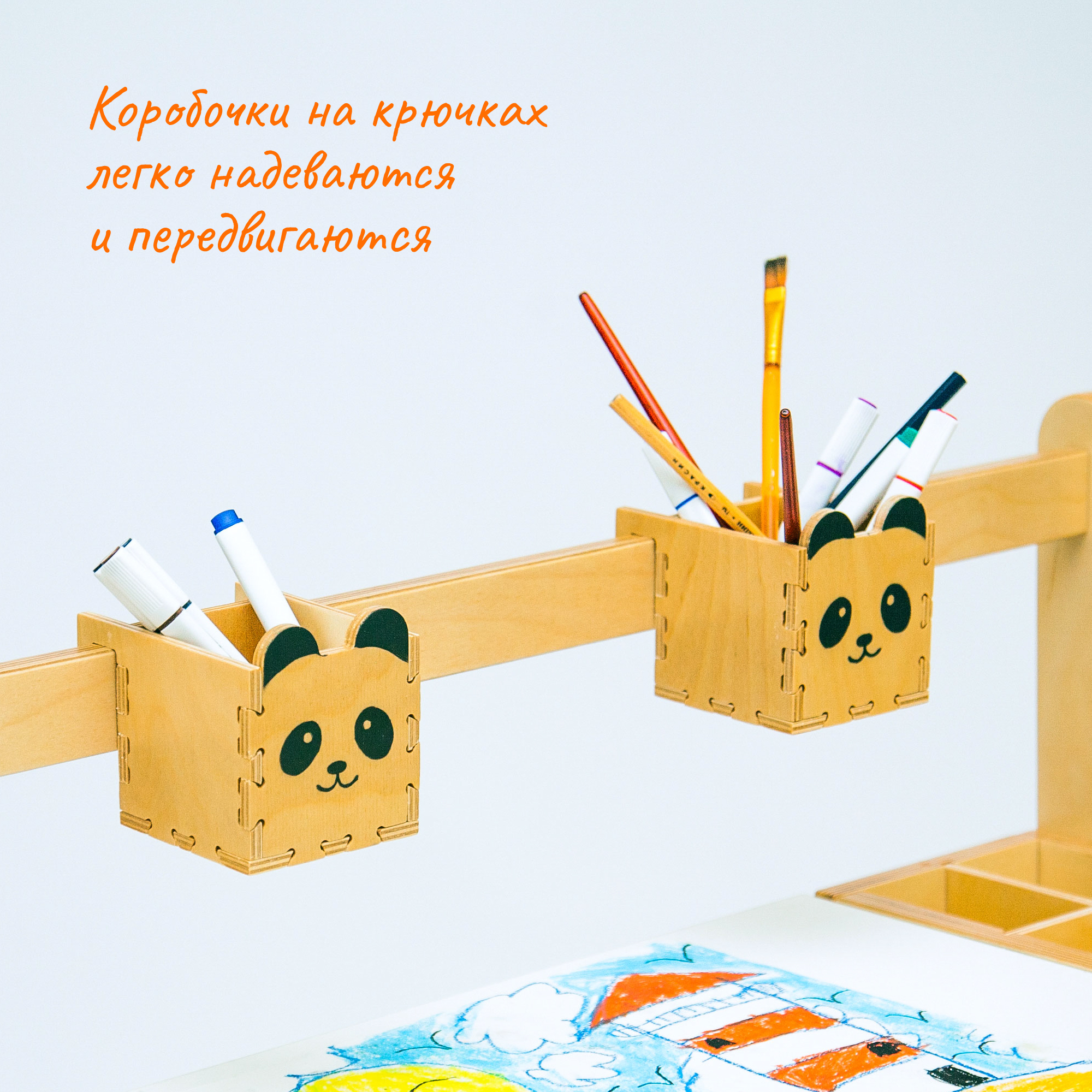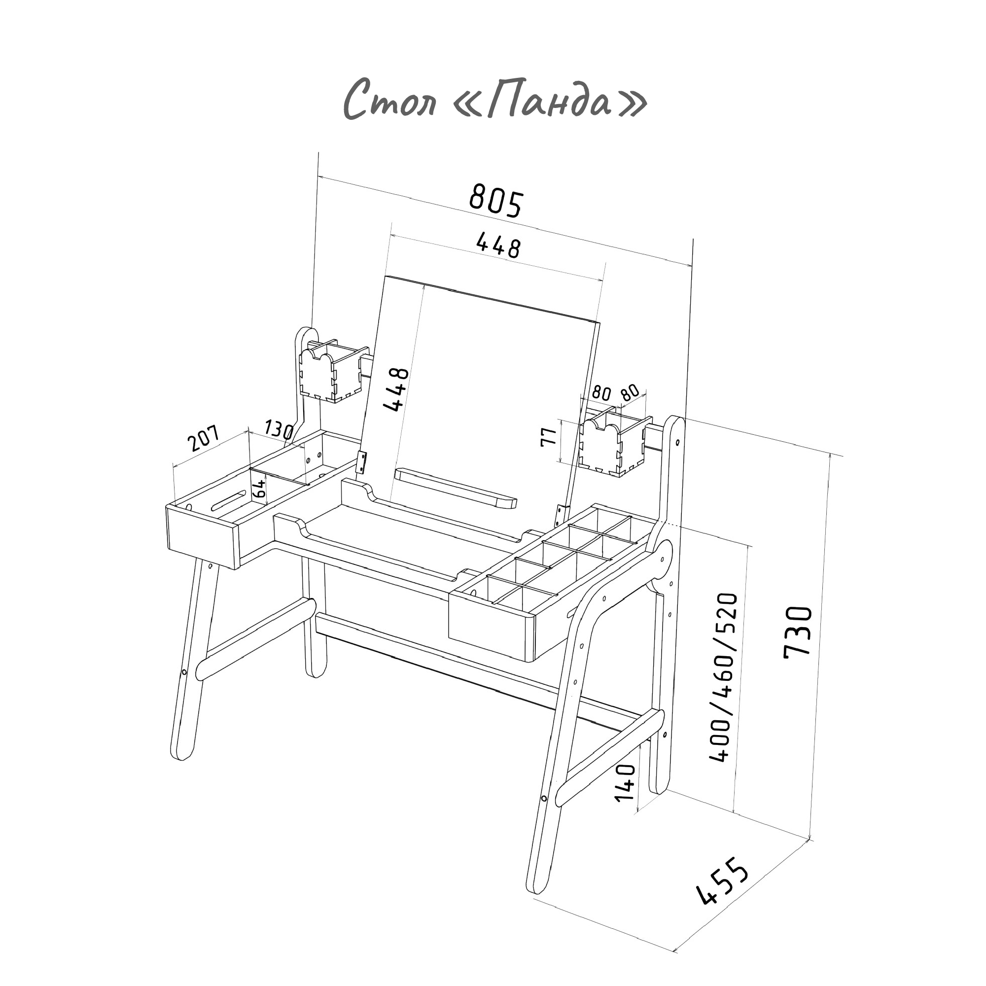 Стол легко превращается в мольберт, что позволяет ребёнку рисовать стоя, как настоящий художник. В удобных ящиках можно хранить краски, карандаши и другие мелочи. А навесные карандашницы помогут держать всё необходимое для рисования под рукой.