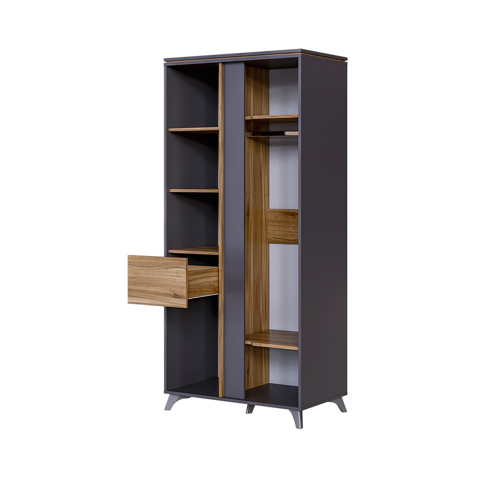 Двухстворчатый шкаф станет прекрасным дополнением интерьера спальной комнаты или прихожей. Сочетание оттенков в отделке ЛДСП оживит помещение, сделав его более уютным, а функциональные качества позволят разместить максимальное количество вещей на полках и вешалках-плечиках. Материал ножек: пластик. Мы постарались собрать воедино все самые важные параметры, такие как оптимальная стоимость, отличное качество и превосходный внешний вид. Получилось очень даже удачно, этот шкаф способен экономить место, пространство и время, для того, что бы сделать вас еще продуктивнее.