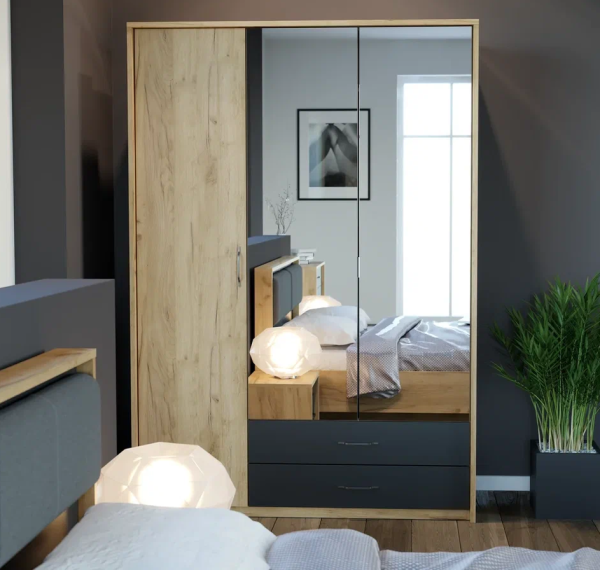 Коллекция Бруклин изготовлена в актуальном цвете Крафт Золотой + Антрацит, который выделяет ее среди остальных вариантов мебели.
