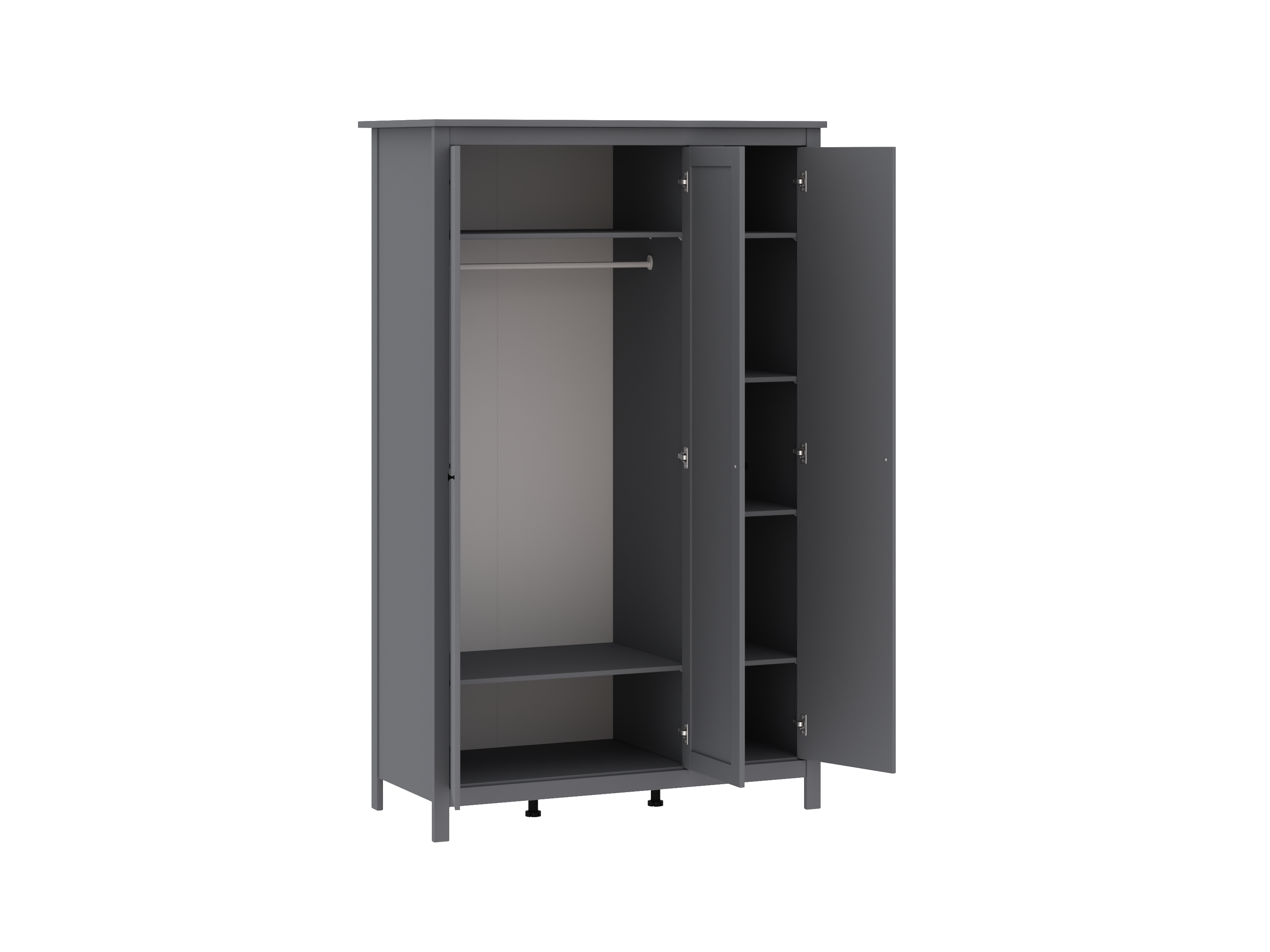 Укомплектован премиальной фурнитурой, бесшумными петлями и направляющими с доводчиком