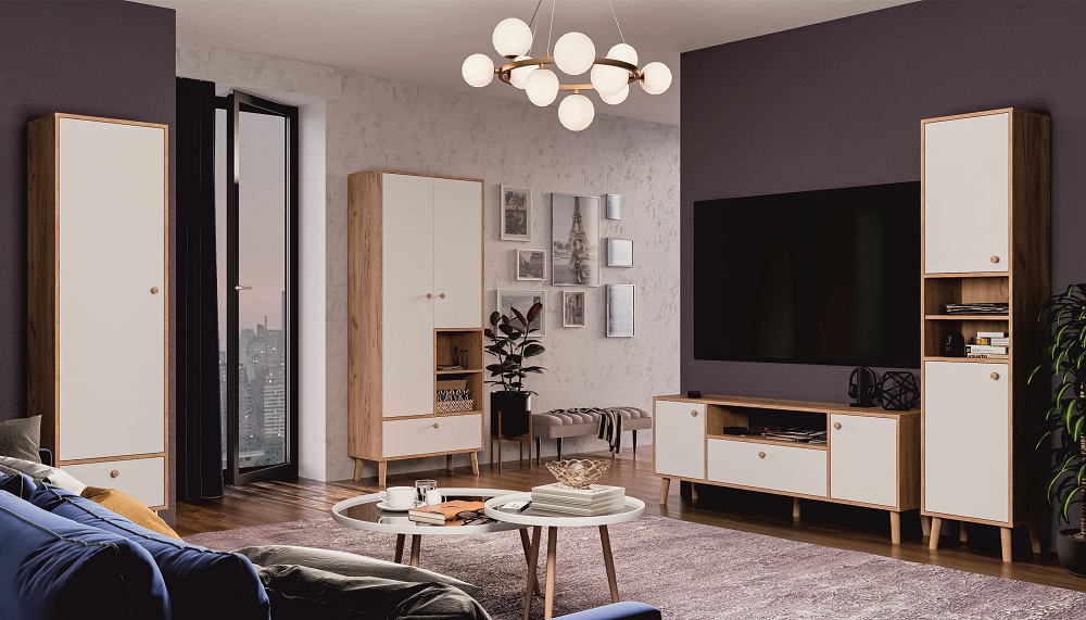 Корпус шкафа выполнен из ЛДСП в теплым цвете дуб золотой, что придаёт ему уютный и элегантный вид, а белый фасад создает контраст, освежая общий интерьер.