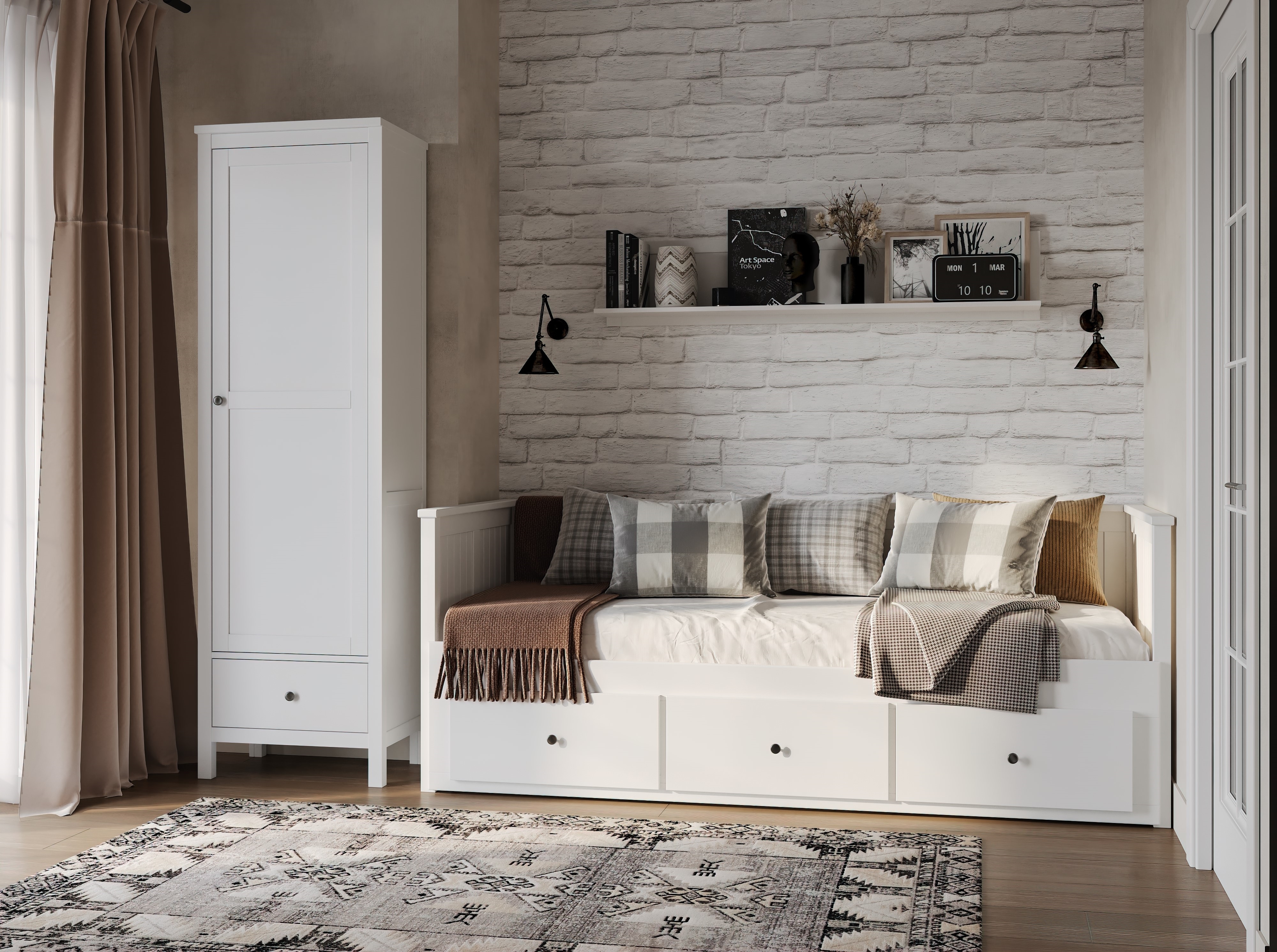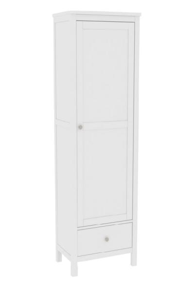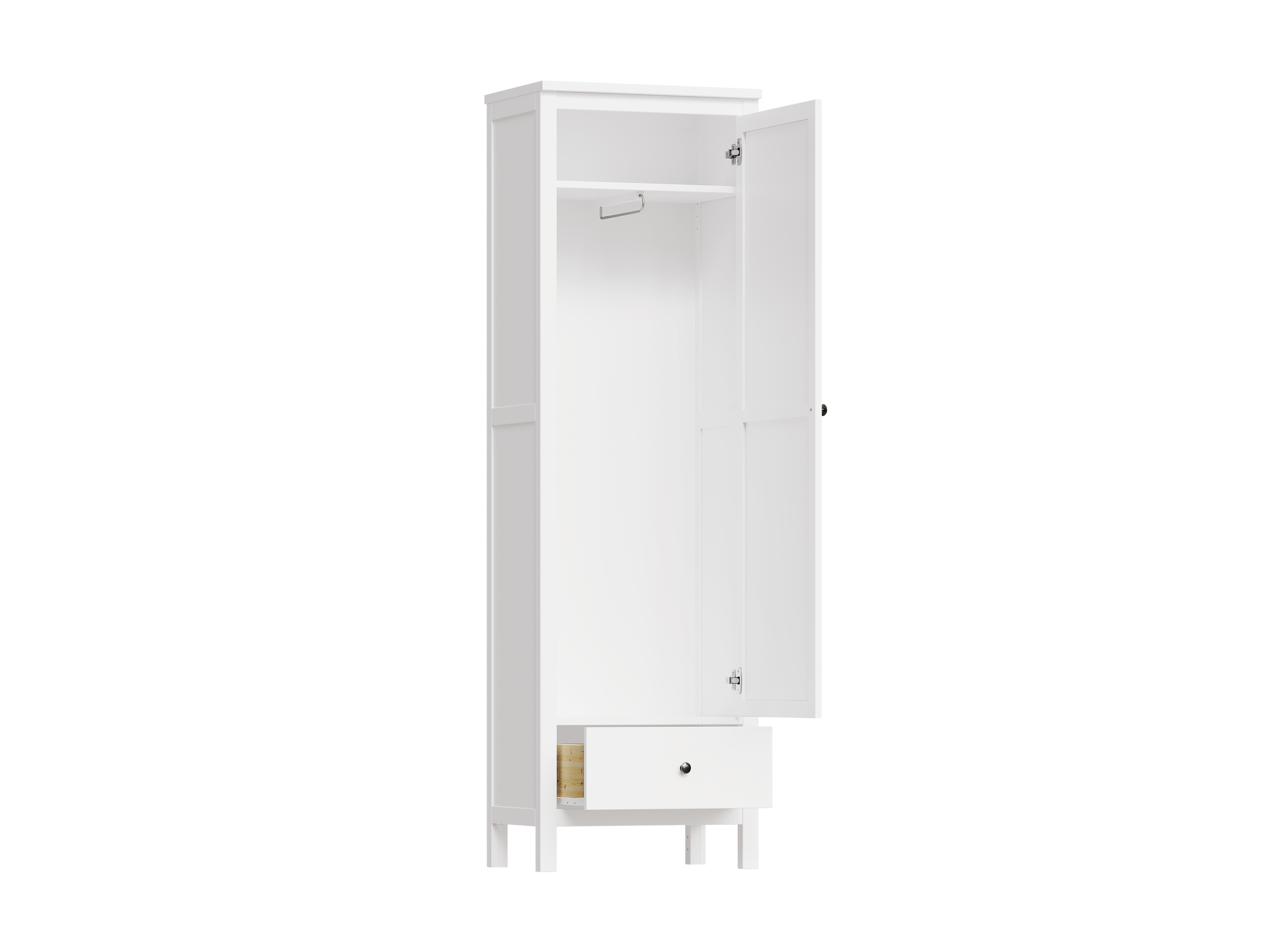 Шкаф одностворчатый Кантри, габариты Ш681хВ1972хГ414 цвет Белый. Изготовлен из массива хвойных пород. Крепится к стене. Мебель для жилых помещений. Гарантийный срок 24 месяца.