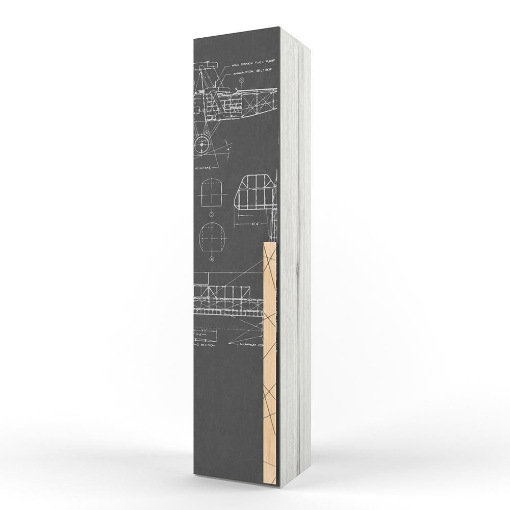 Детали из натурального дерева. Фотопечать, изюминка комплекта — УФ-печать с изображением формул или авиационных чертежей. Она разбавляет строгость фасадов и становится научным консультантом для ребенка.