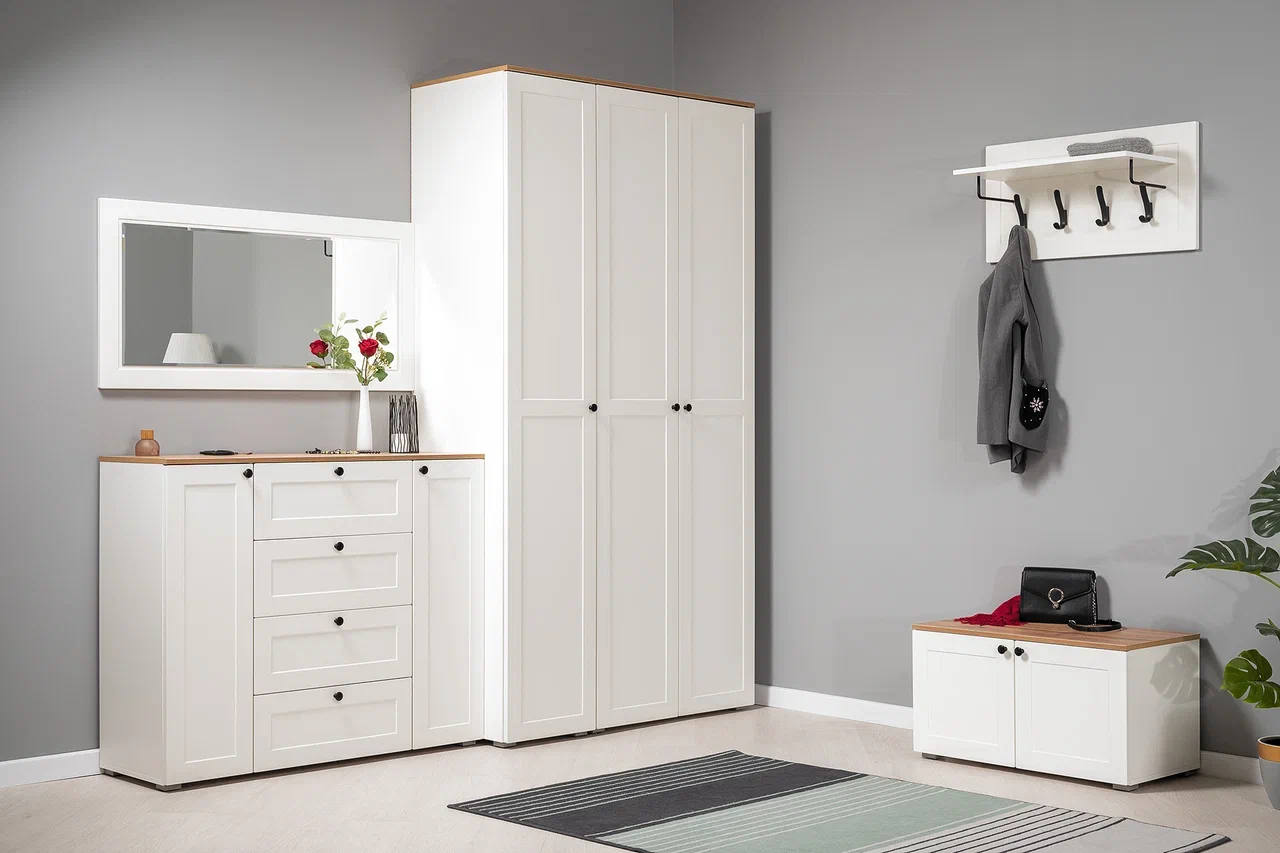 Продуманная система хранения с полками и ящиками обеспечивает практичность и удобство.