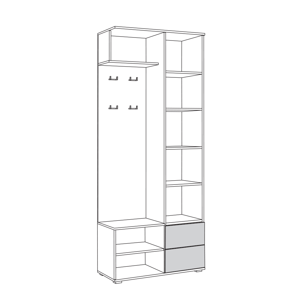 Лаконичная дизайнерская фурнитура идеально дополняет внешний вид прихожей Куба.