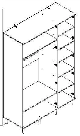 Внутреннее пространство шкафа разделено на два отделения: платяное, с двумя большими стационарными полками и продольной металлической штангой, и отделение с пятью стационарными полками. Благодаря своей вместительности, шкаф “Денвер” позволит организовать порядок в вашем доме.