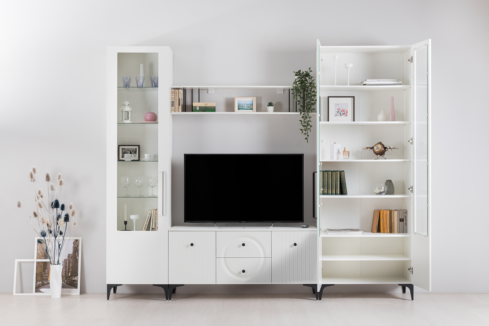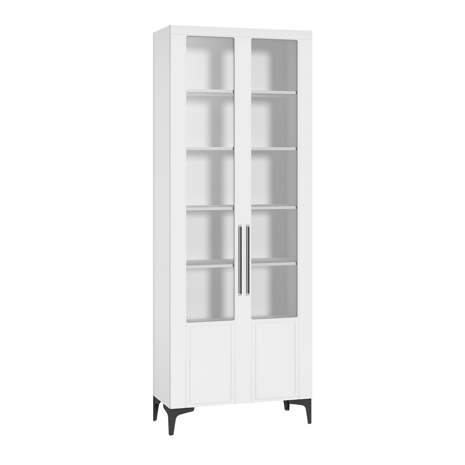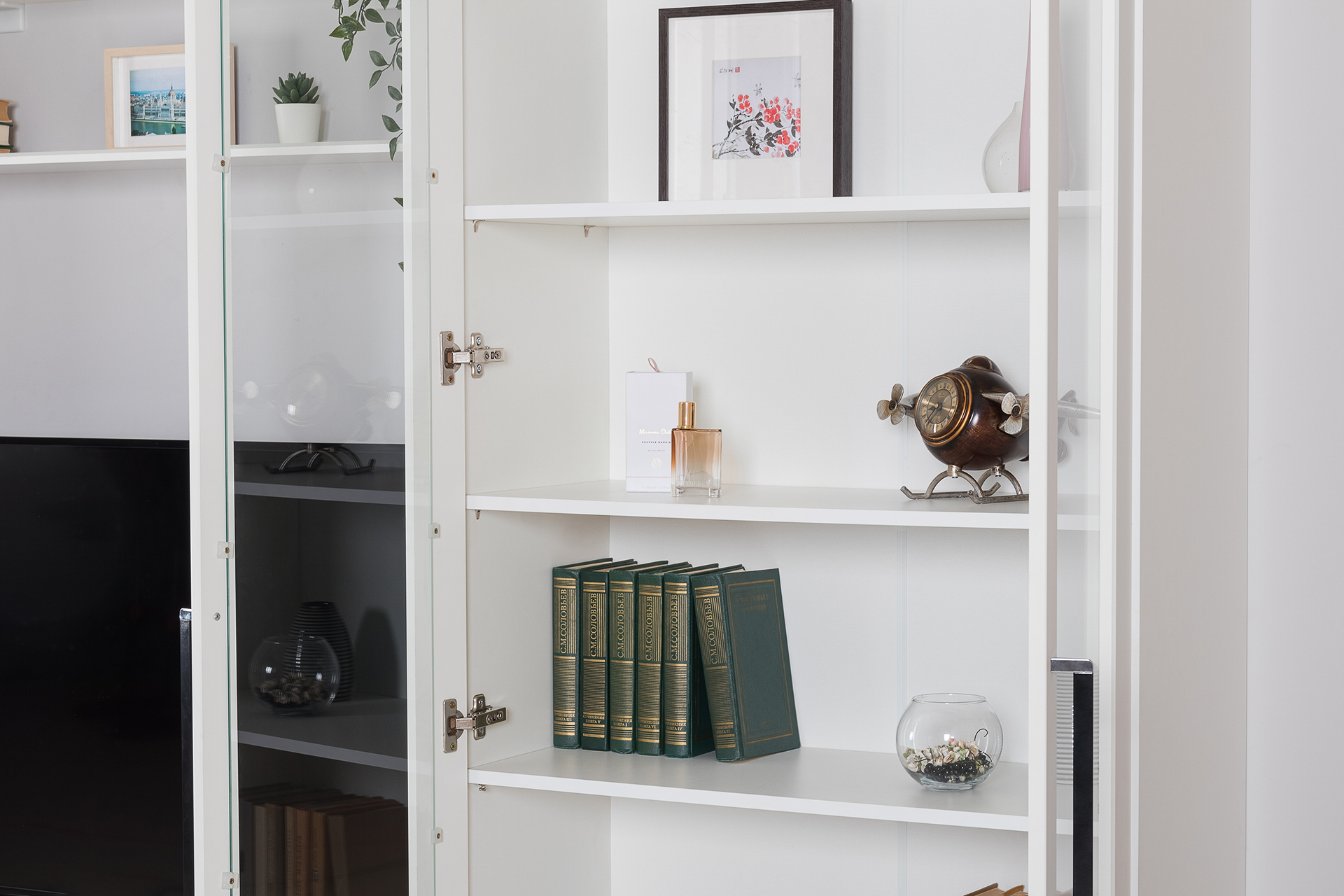Изящный белоснежный шкаф для посуды и предметов интерьера Валенсия в модном стиле ар-деко создаст особую атмосферу в молодежной комнате.