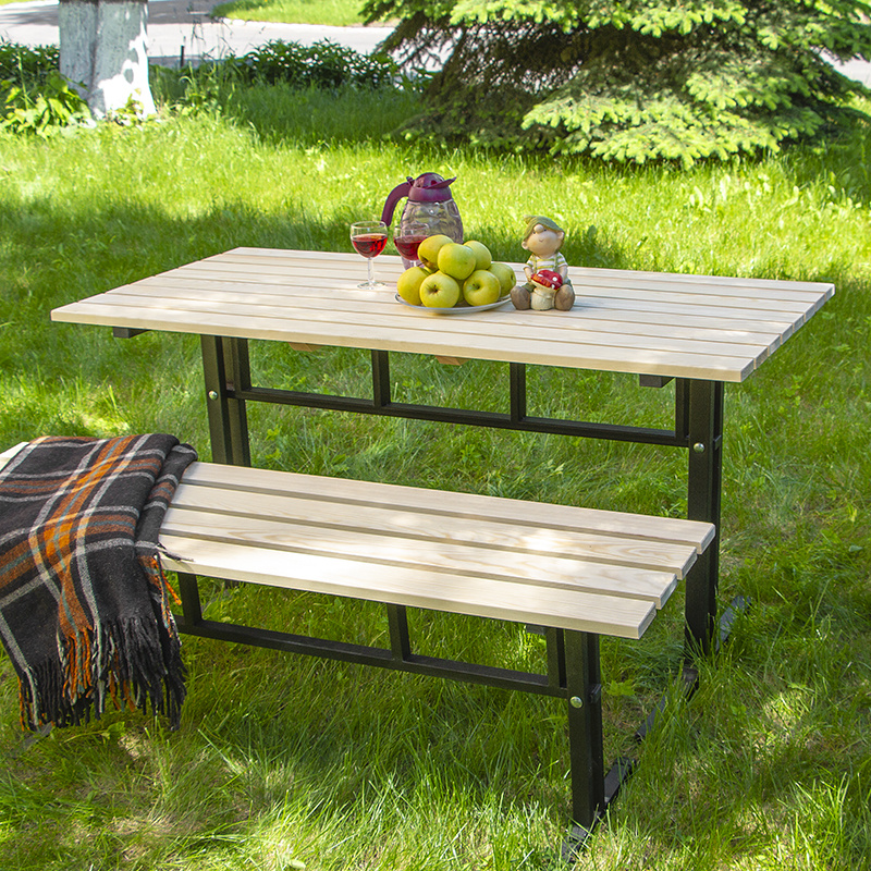 Скамейка прочная и надежная из металла и массива.