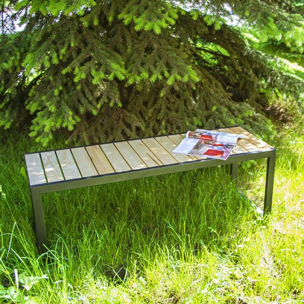 Скамейка прочная и надежная из металла и массива.