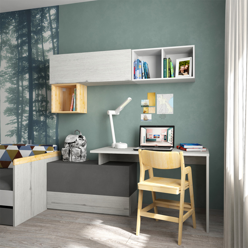 Стол г-образный коллекции НьюТон Грэй ставится на подвесную тумбу или комбинацию тумб (подвесная и нижний ярус).