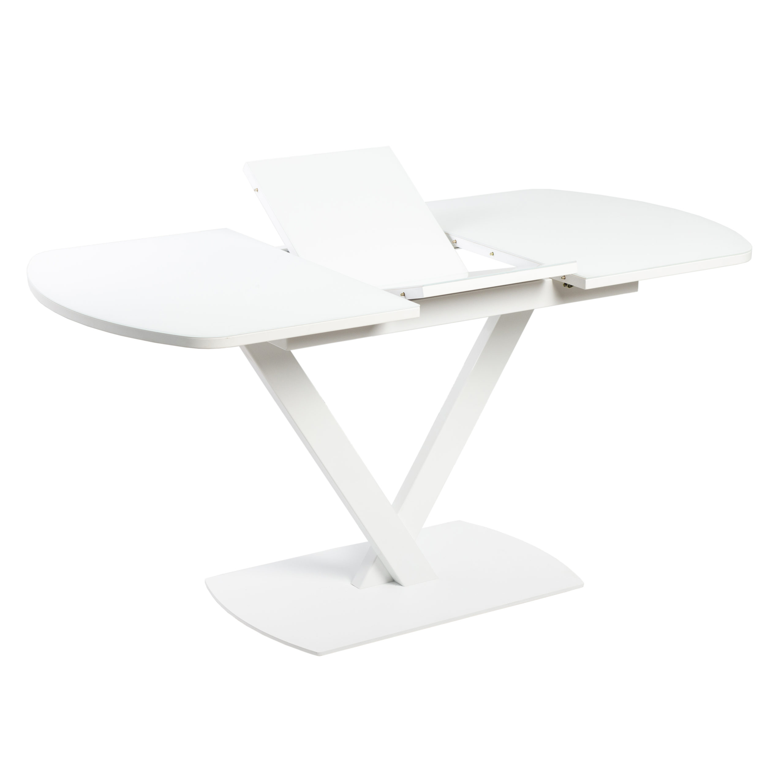 Стол Фауст СТ раздвижной выполнен из ЛДСП 22 мм, покрытого окрашенным закаленным стеклом 4 мм с безопасной фаской, вставка-бабочка со стеклом из ЛДСП 38 см. Стекло окрашено итальянскими керамическими красками. Стол на одной опоре.