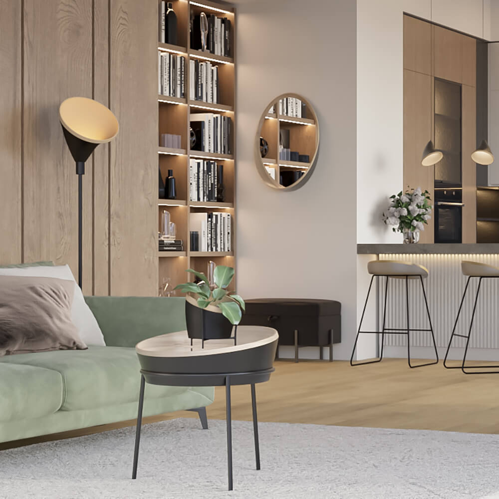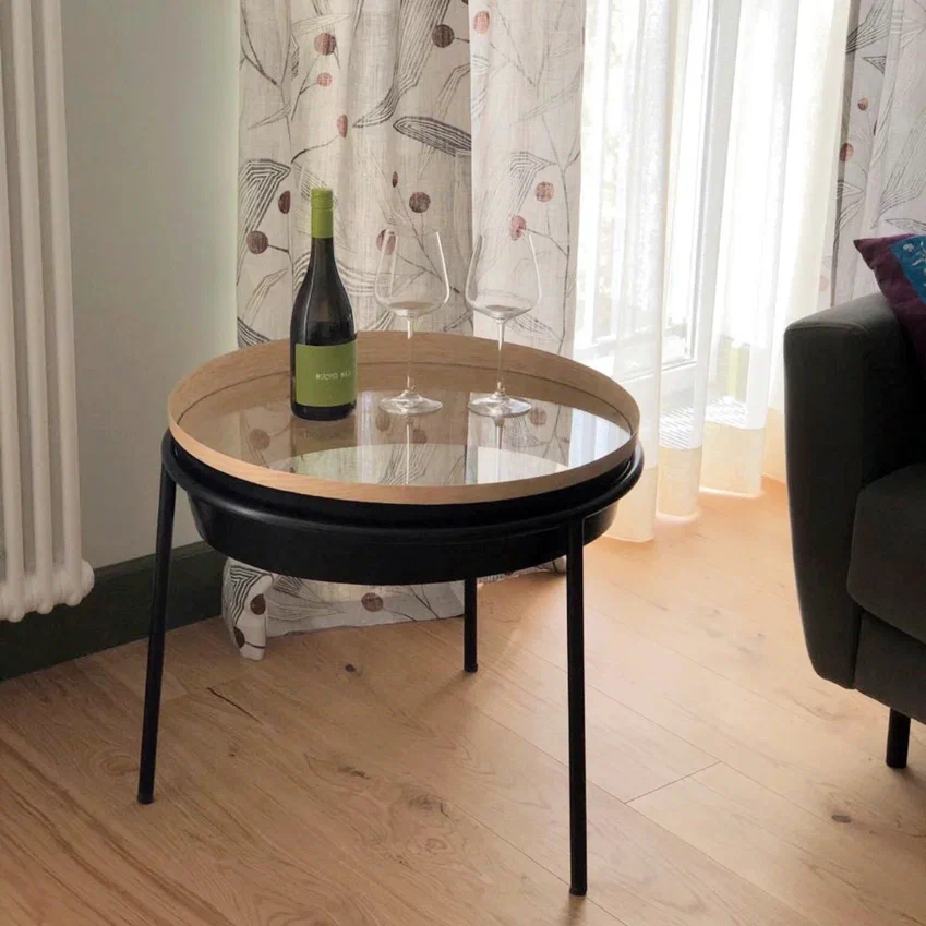 Столик TREN - это стильное дизайнерское решение с элегантными футуристичными мотивами. Изящные линии плавно подчеркивают текстуру скрученного шпона.