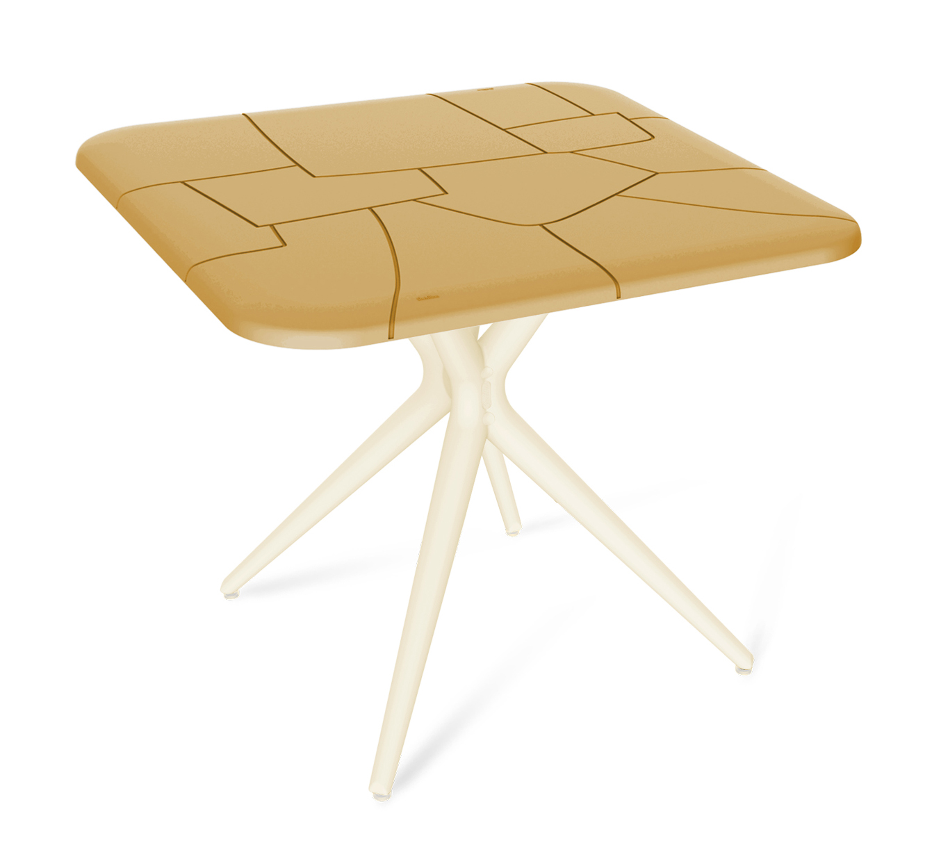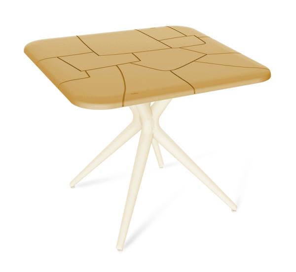 Изящные перекрещивающиеся ножки повторяют натуральные изгибы деревьев. Графика и геометрия рисунка столешницы вдохновлена легендарной каменной кладкой из Перу. Они придают изделию эксклюзивный вид. Столешница имеет безопасный плавный закругленный переход от лицевой поверхности к боковым кромкам.