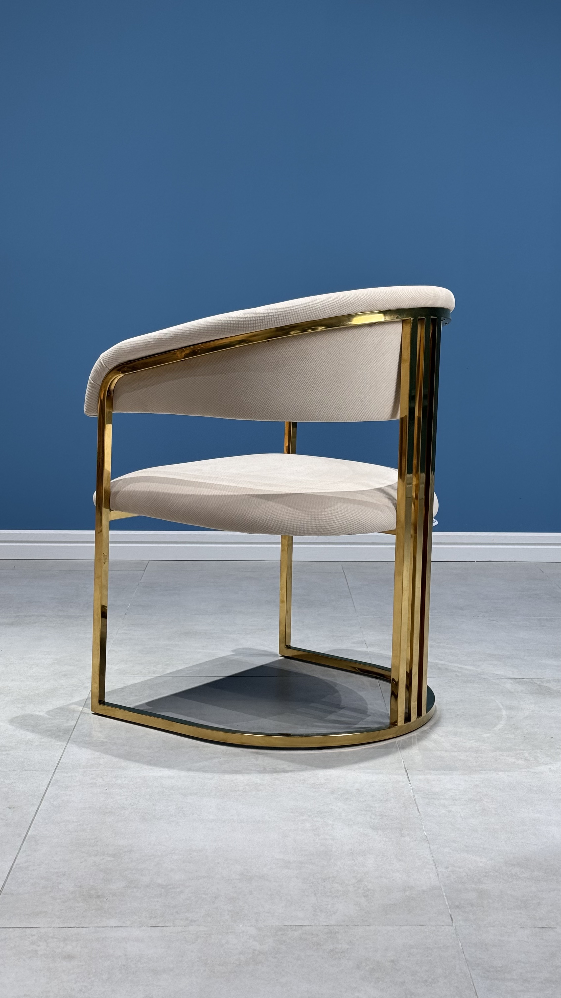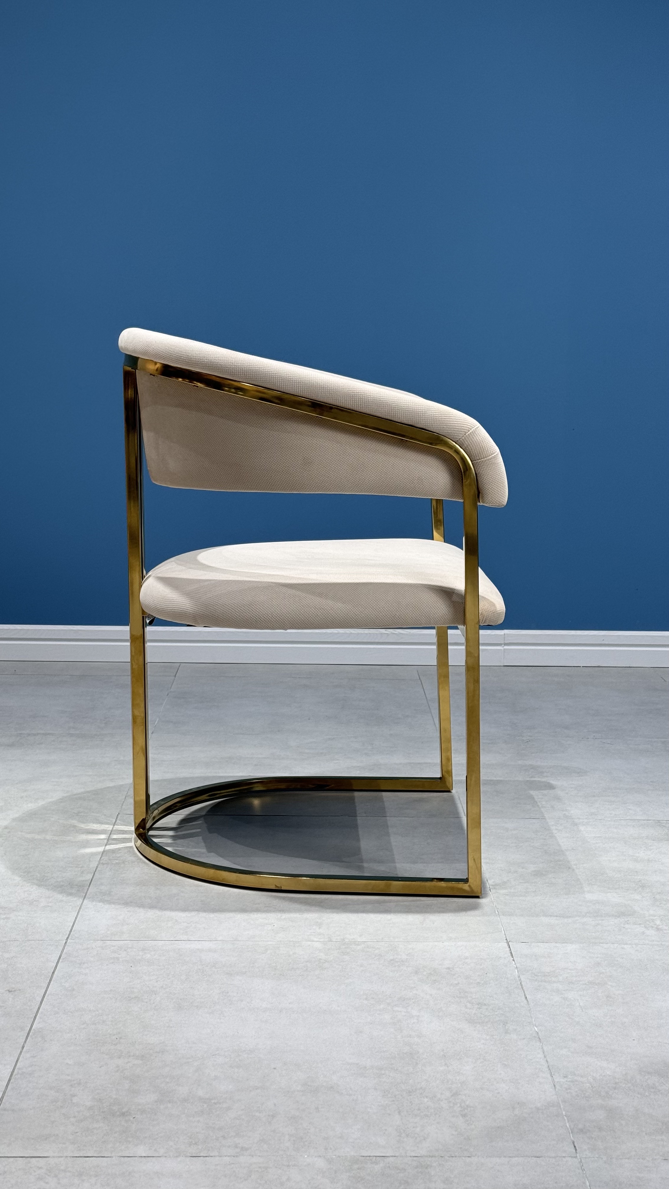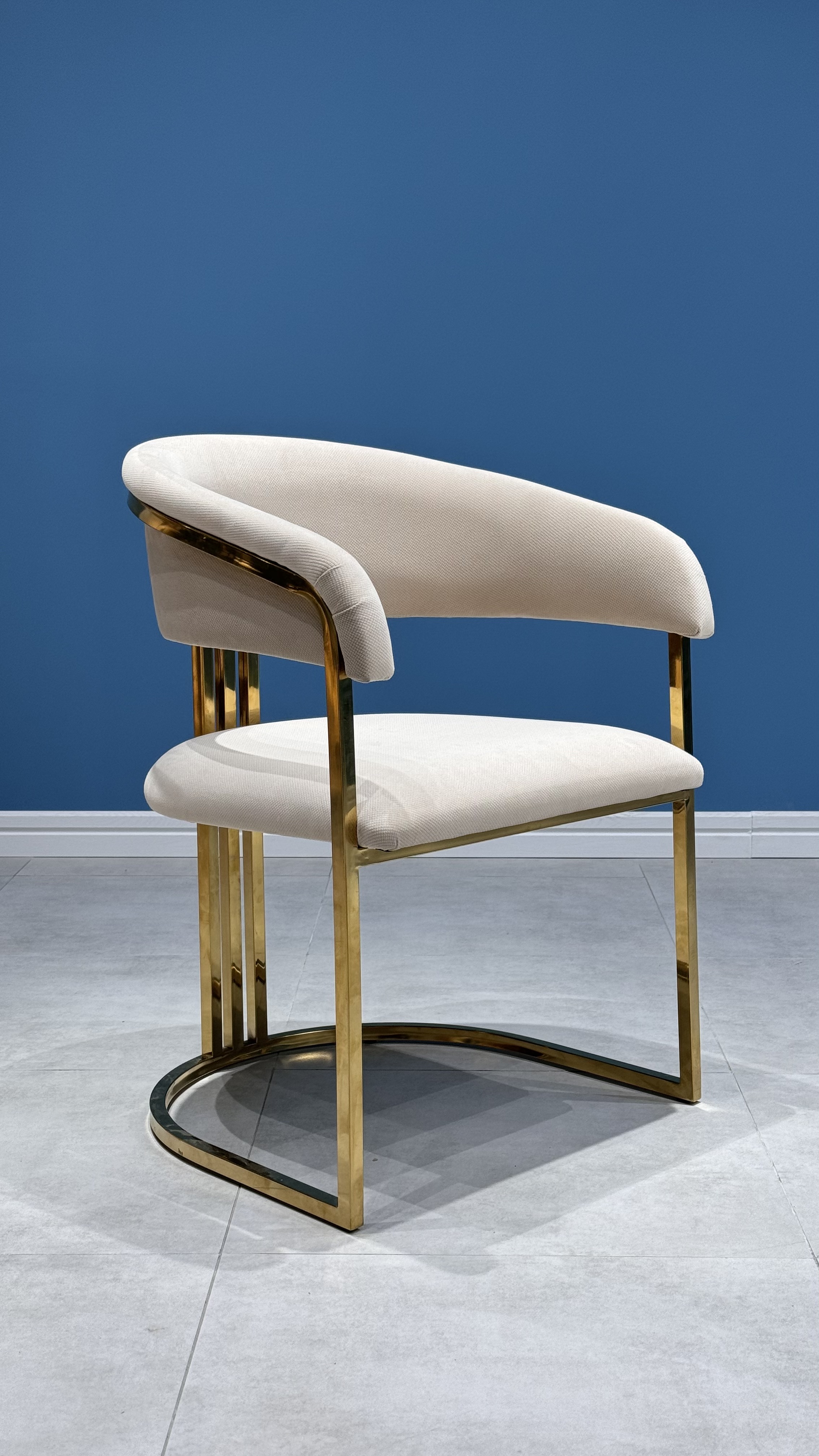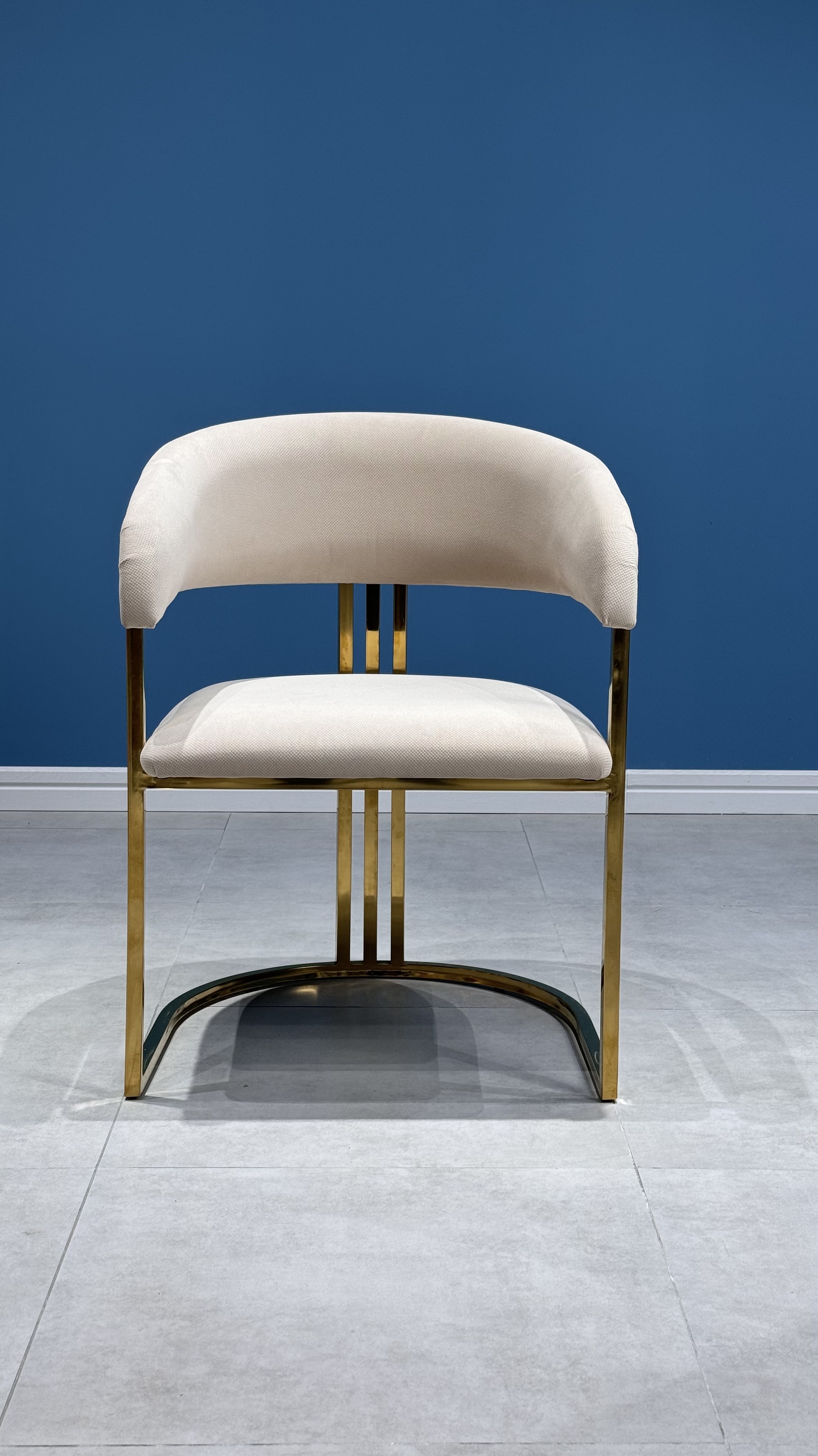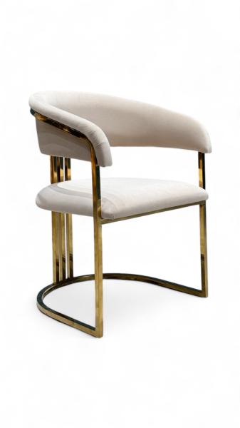 Стул Биен с золотым металлокаркасом и мягким белым велюром — это стильное и уютное решение для вашего интерьера.