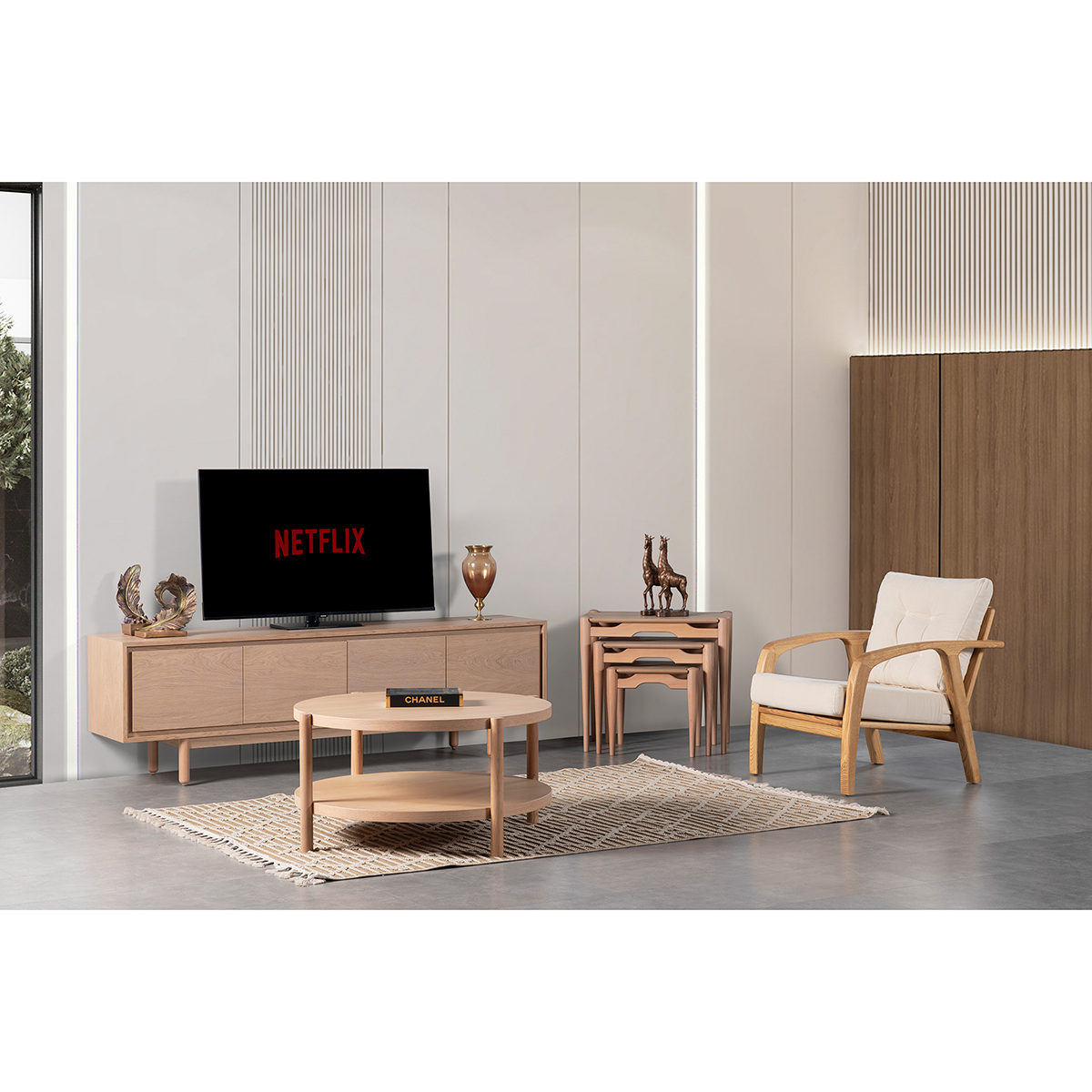 Тумба для TV Abelya из дубового шпона и массива, является не только функциональной, но и эстетически привлекательной. Она подчеркивает стиль интерьера и создает уютную атмосферу в комнате. Благодаря использованию натурального дерева и шпона, такая мебель прослужит долгое время и будет радовать своим внешним видом.