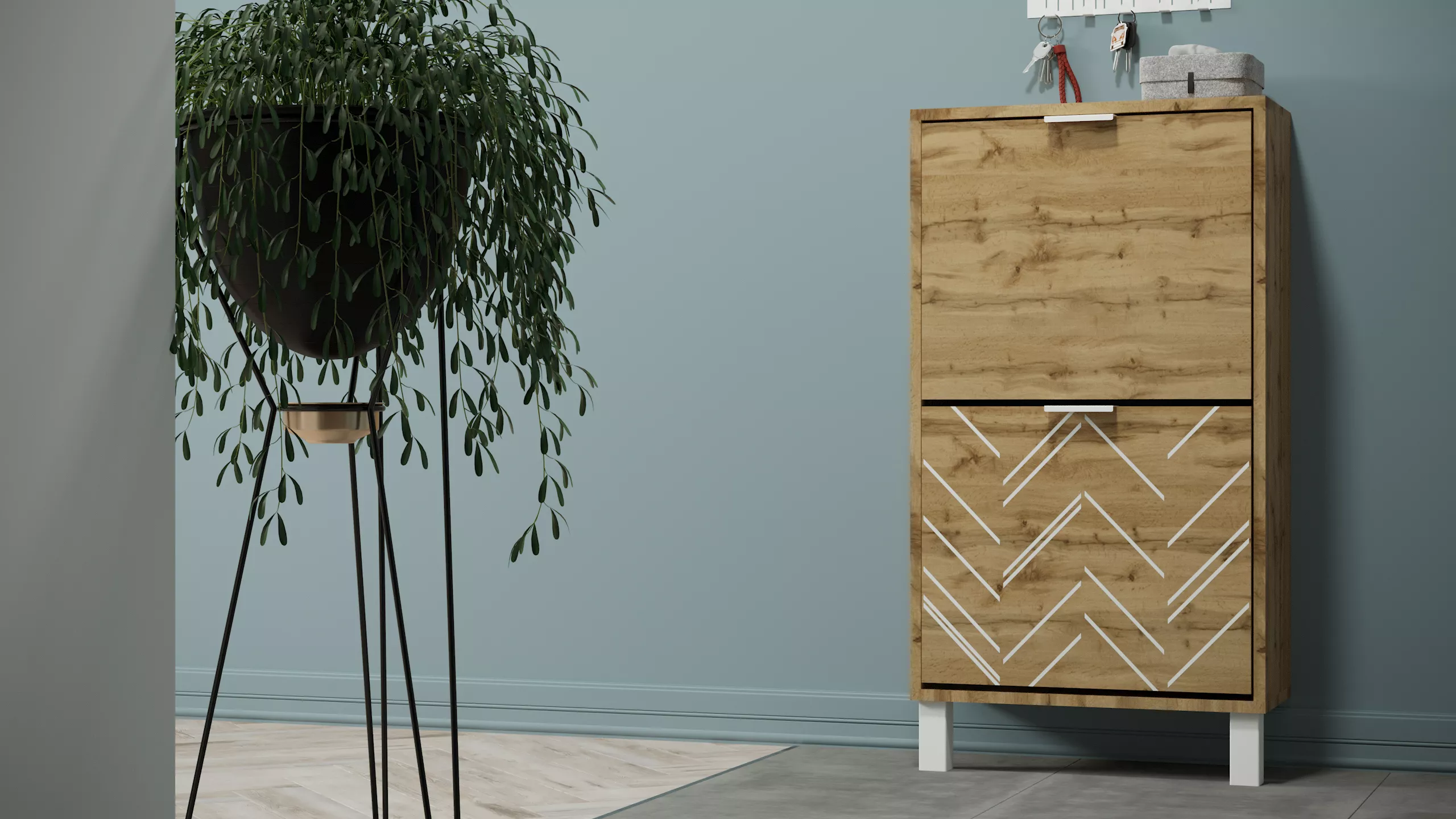 Тумба для обуви "Хигс" создана для тех, кто любит порядок в хранении обуви. Модель представлена в двух версиях отделки фасада УФ печатью - белый или черный, что облегчает выбор подходящей к вашему интерьеру тумбы. Простая геометрическая форма смотрится легко и не загромождает пространство. Дизайнерский прием - возможность комбинировать с другими предметами интерьера из серии "Хигс", позволяя воссоздать атмосферу истинного комфорта и удобства. Тумба для обуви выполнена из материала ЛДСП в сочетании с металлическим профилем 4 мм.