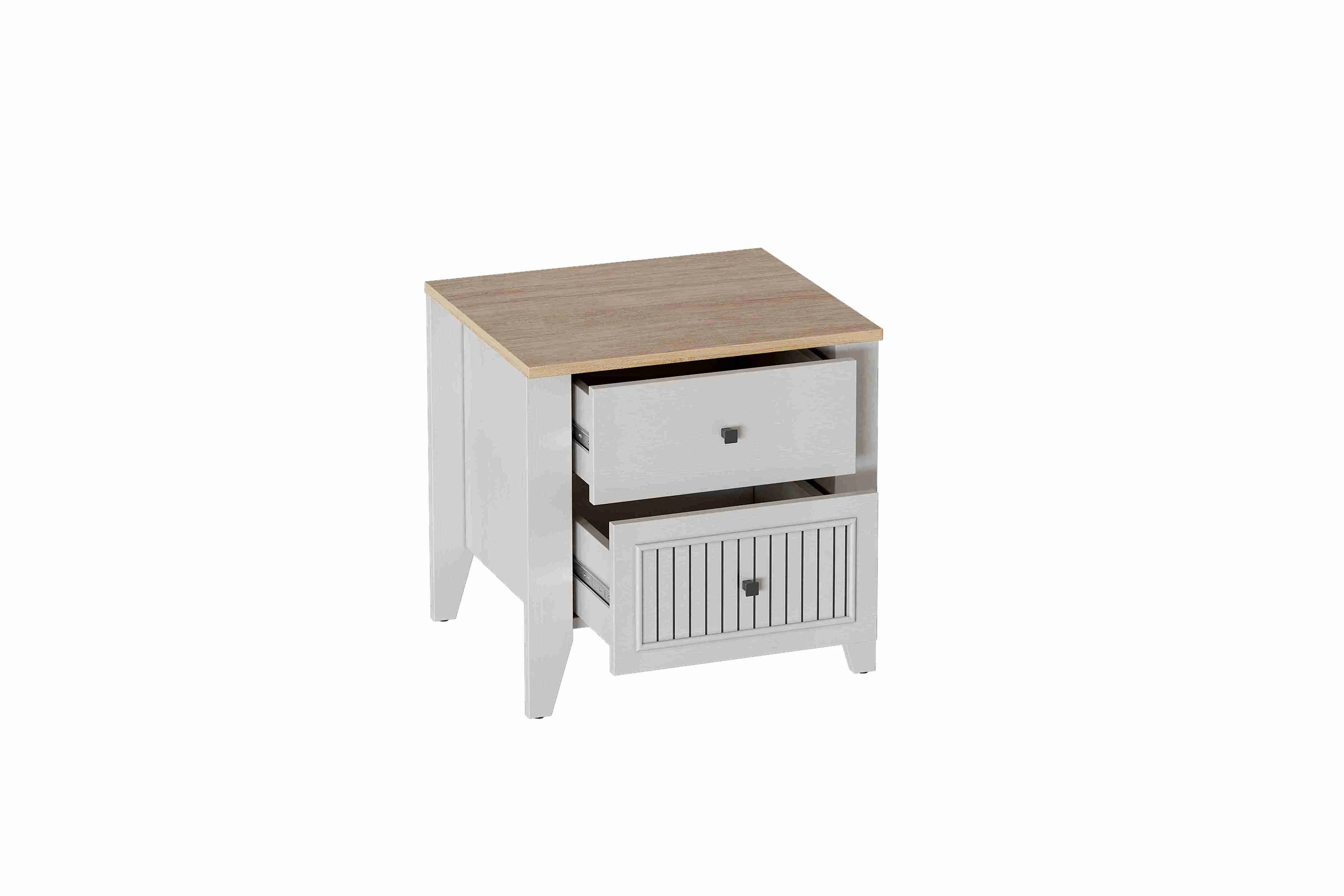 Тумба прикроватная Валенсия выполнена из (ЛДСП) в комбинации Дуб натуральный светлый / Персидский жемчуг.